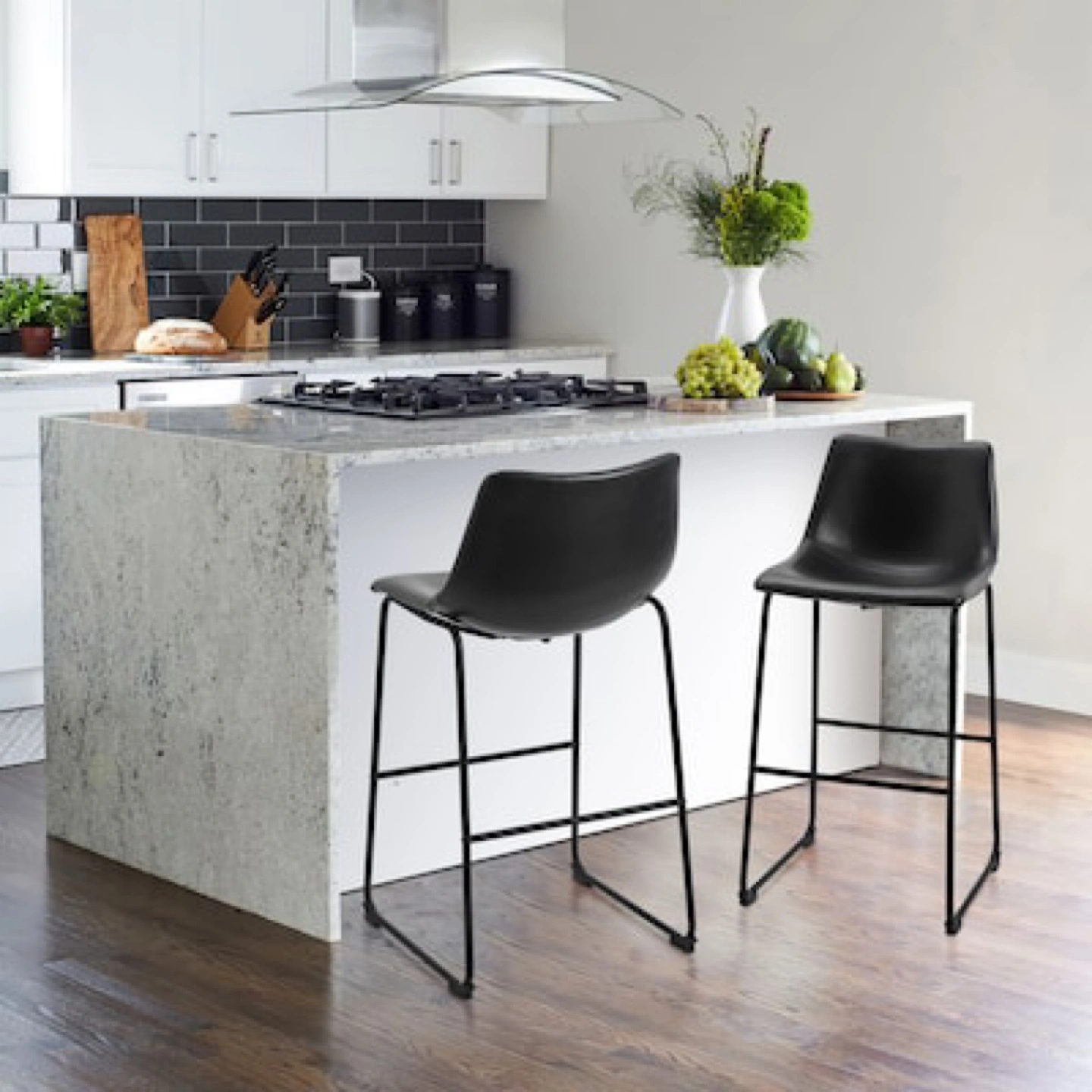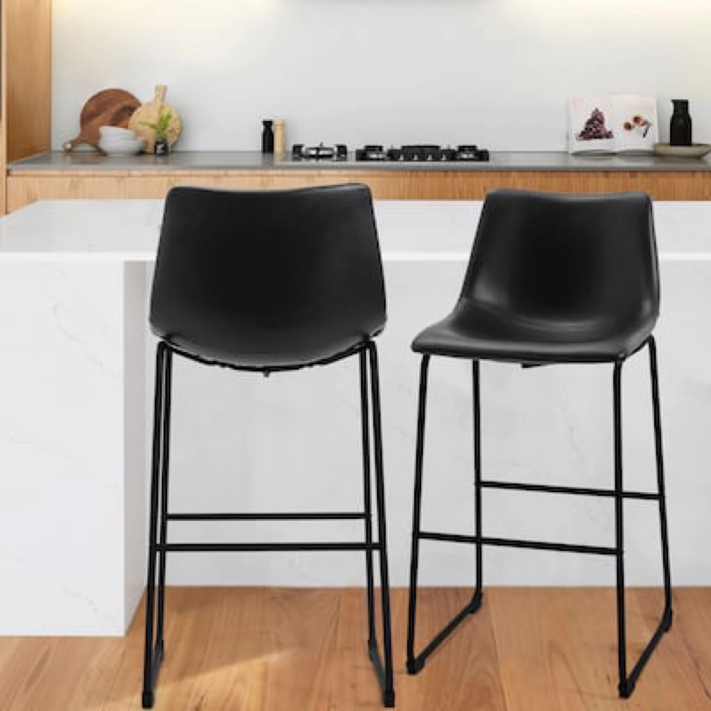 Black Faux Leather Bar Stools (Set of 2) - 29-3/8 in. Dimensions: 18” W x 22” D x 40” H New In The Original Box/Excellent Condition Verified/Trusted Seller Read My Reviews!