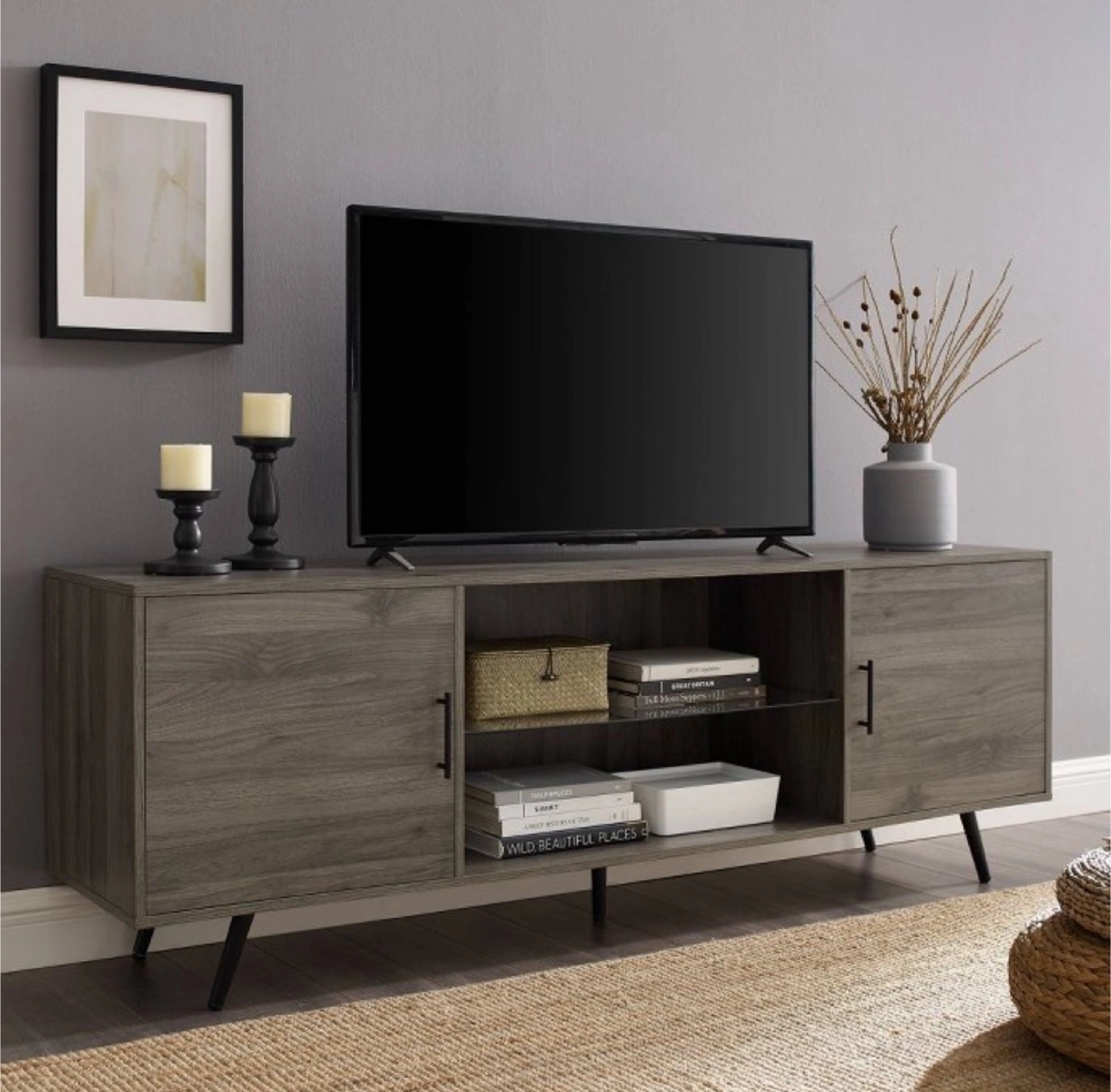 Extra Large Mid Century Modern TV Stand Dimensions: 60"W x 16"D x 24"H Fits up to a 68" TV New In The Original Box/Excellent Condition For Easy Transport in Vehicle Verified/Trusted Seller Read My Reviews!