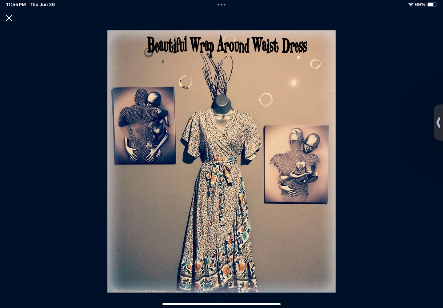 Beautiful wrap around waist dress with a floral pattern! It's brand new and ready for a new home. The dress features a flattering wrap design and a tie at the waist, making it adjustable and comfortable. Perfect for a casual day out or a special occasion