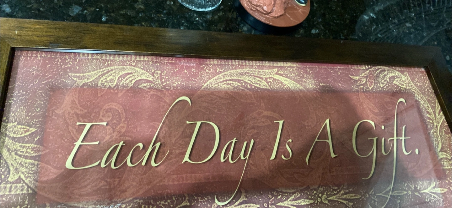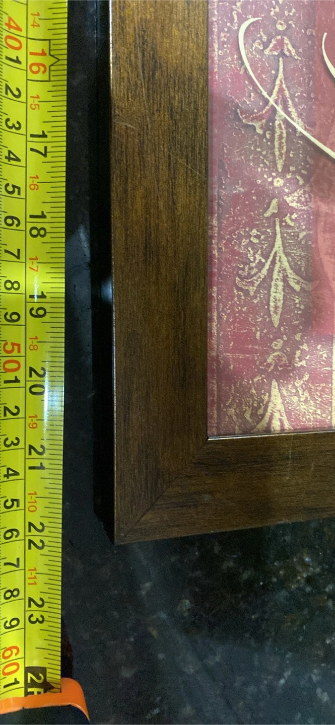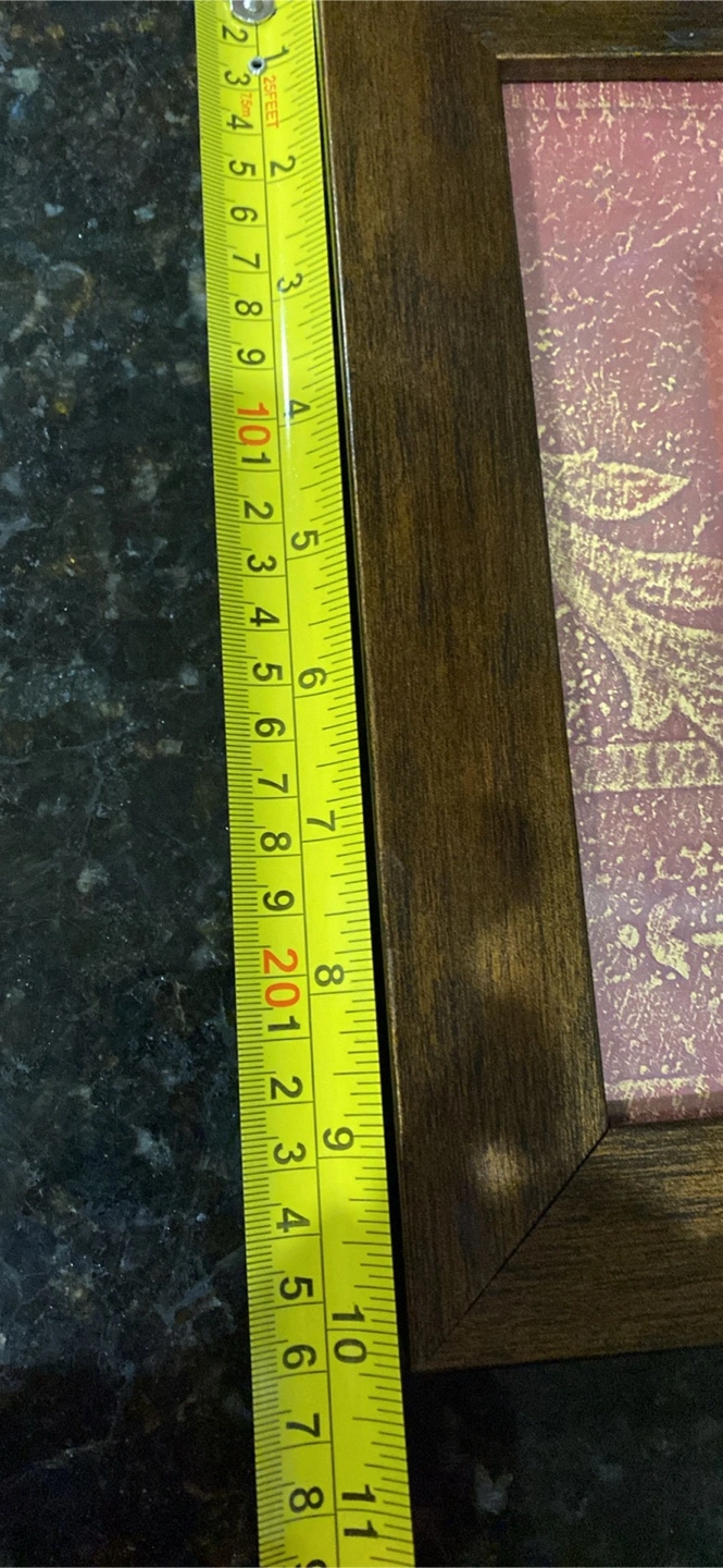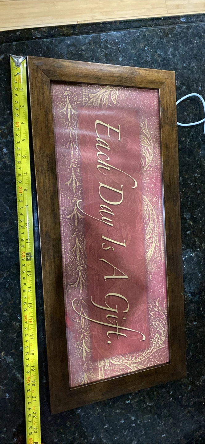 20Framed wall art. Features inspirational quote. Dark brown wood frame. Measures approximately 20" x 8".
