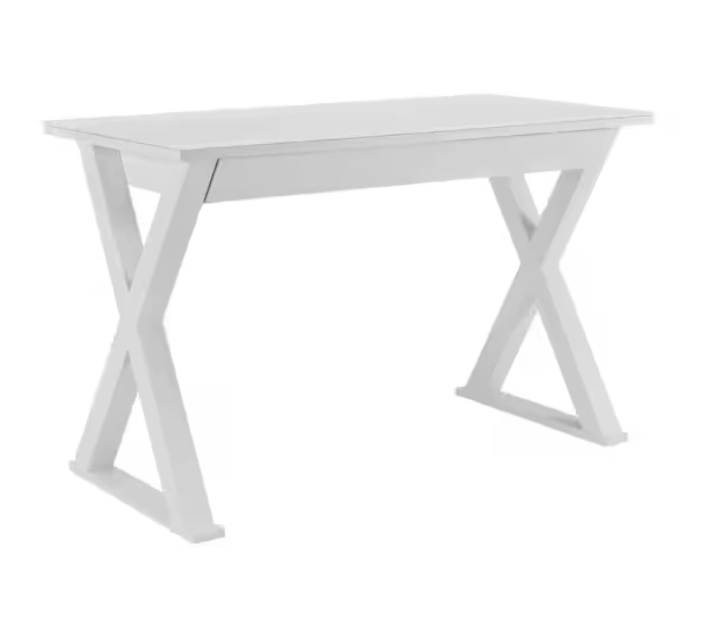 Selling a stylish white writing desk with a glass top! It's in great condition and ready for a new home. The desk features a modern design with X-shaped legs. Perfect for a home office or study space!