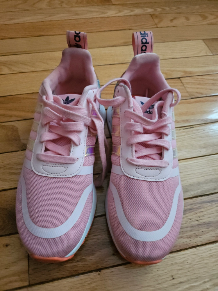 Selling a pair of Adidas women's shoes in pink! They are size 4 US. The shoes are in good condition and ready for a new home