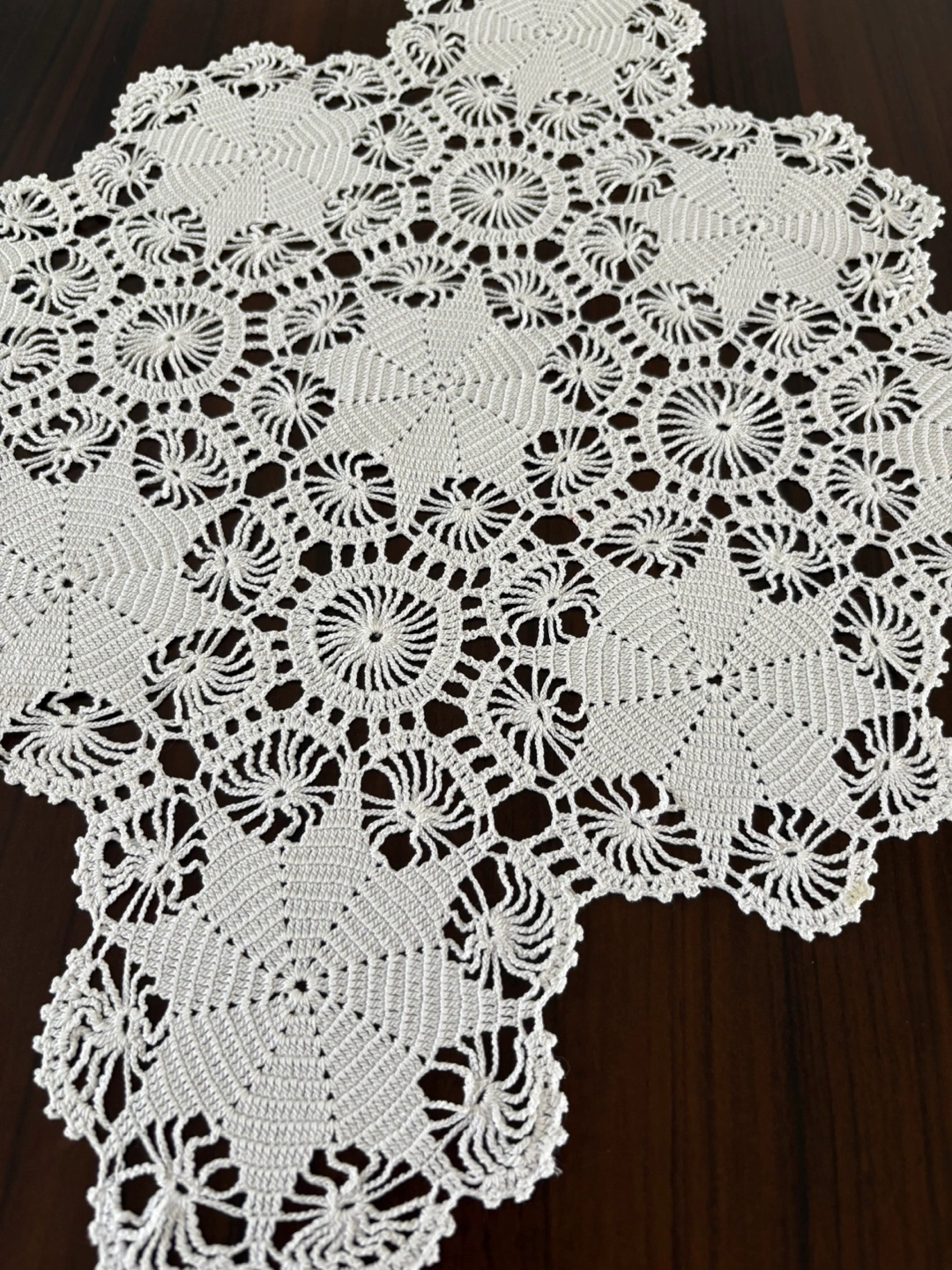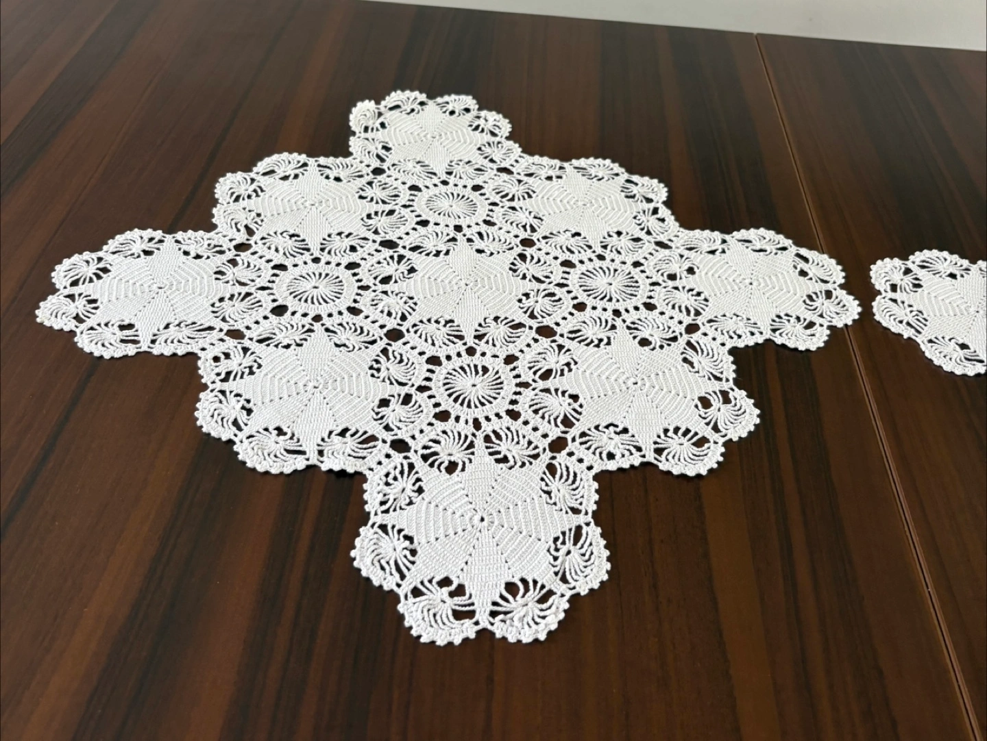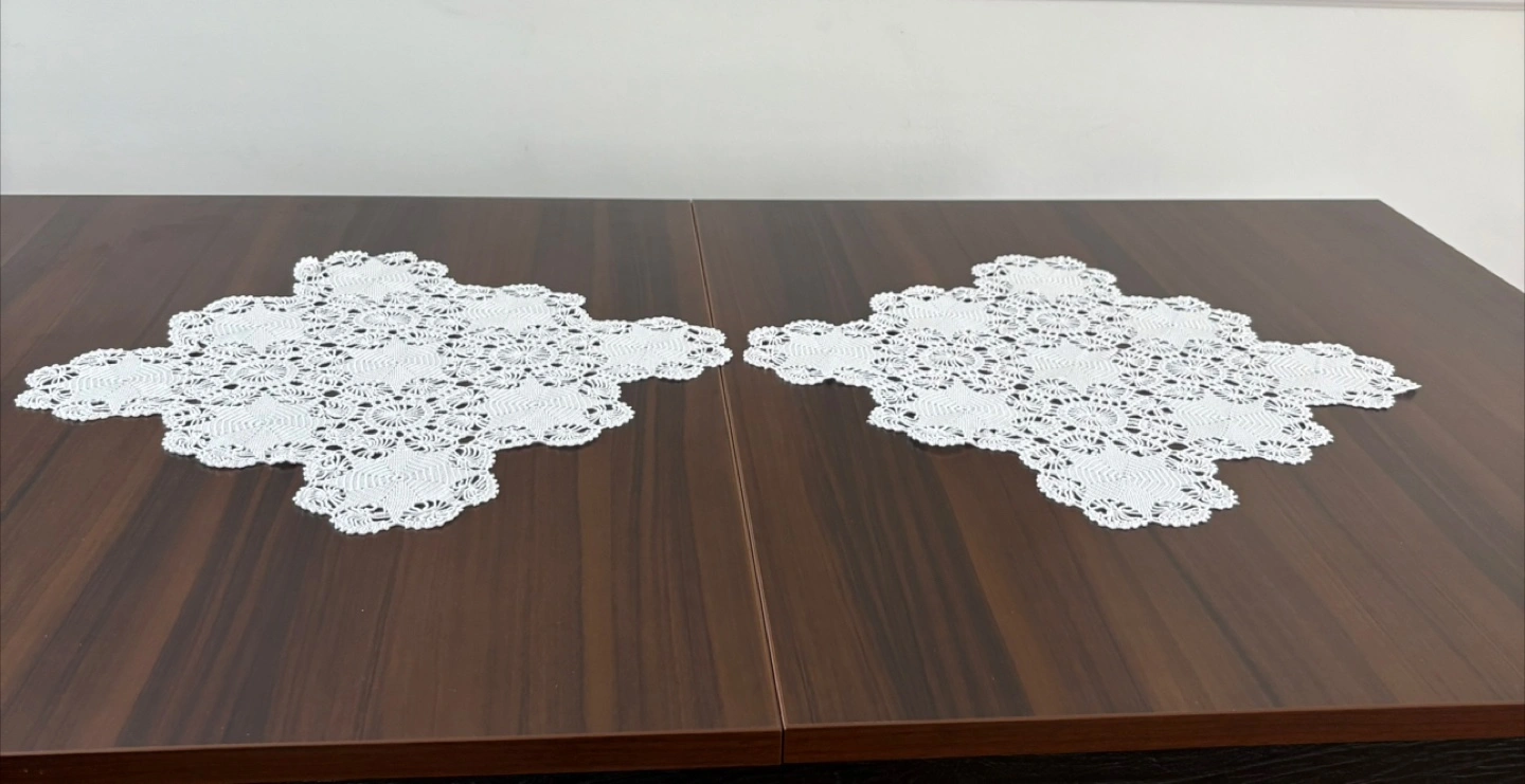 I'm selling a set of two handmade crochet doilies in white. They have a beautiful, intricate design. Perfect for adding a touch of vintage charm to your home!