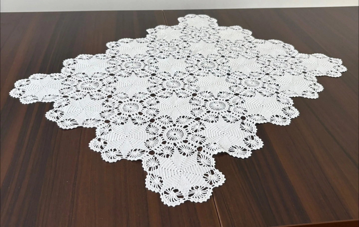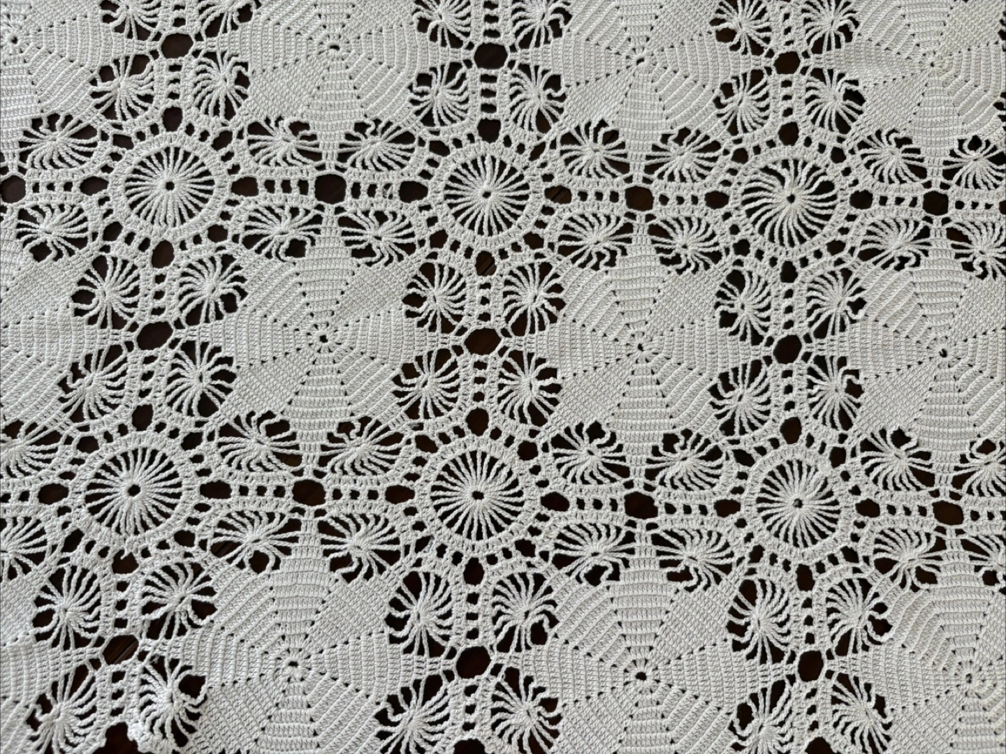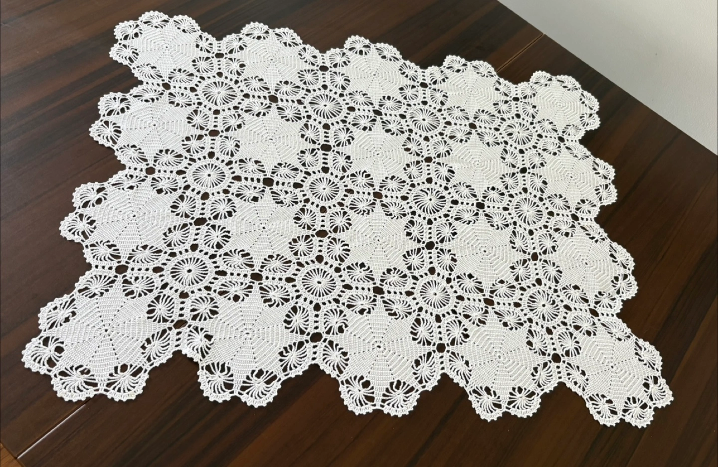 Selling a beautiful handmade crochet table runner. It's a lovely white color and would look great on any table. The intricate design adds a touch of elegance to your home decor. It's in excellent condition and ready to brighten up your space!