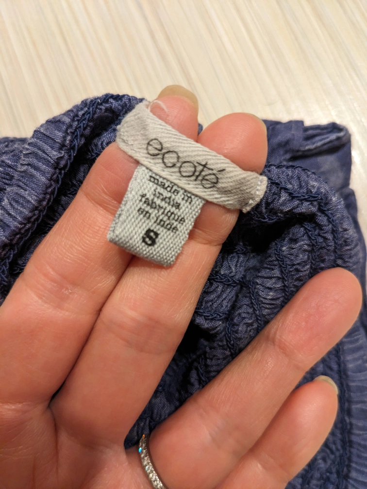 893Ecote blue jumpsuit. It's a size small and made in India, smocked top part, easy pull on design. Pick up only.