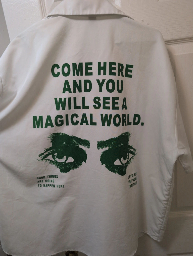 Manfinity White Graphic Button-Up Shirt - Size L