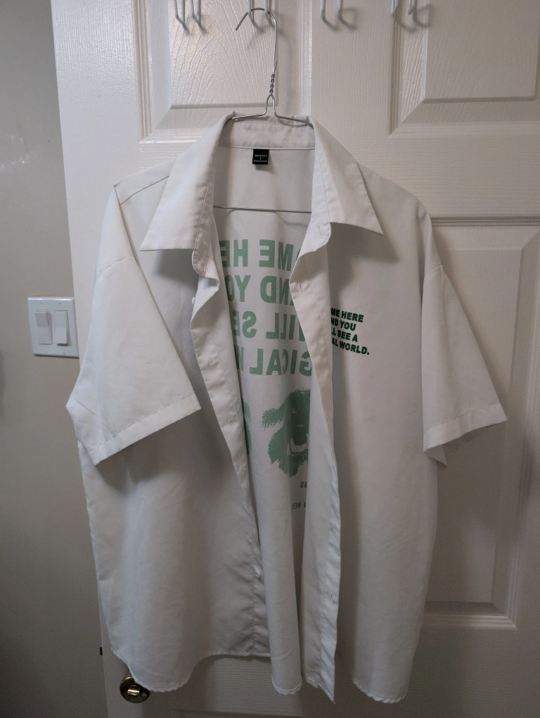 Selling a Manfinity white button-up shirt in size L.