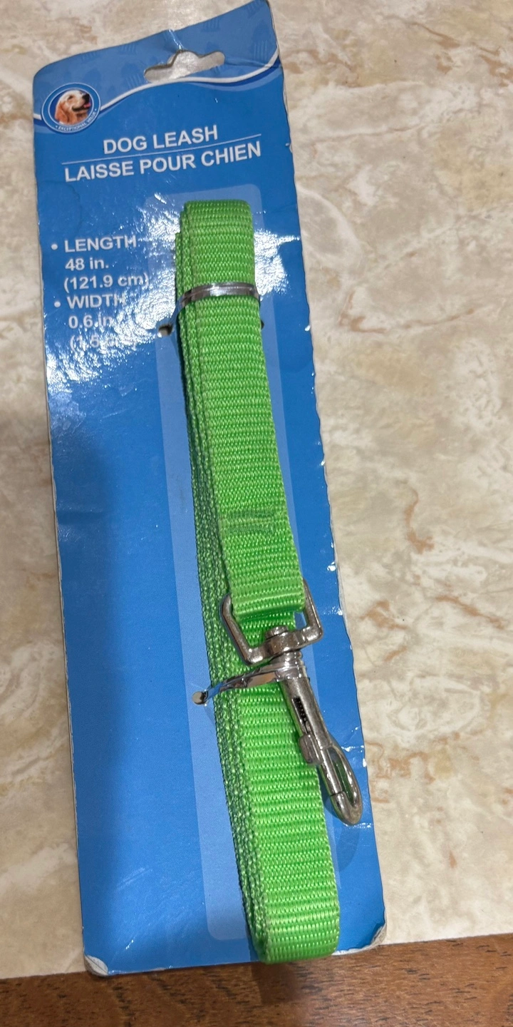 I'm giving away a brand new dog leash still in its original packaging! It's a vibrant green color and measures 48 inches (121.9 cm) in length and 0.6 inches in width. Not enough reinforcement for my pet