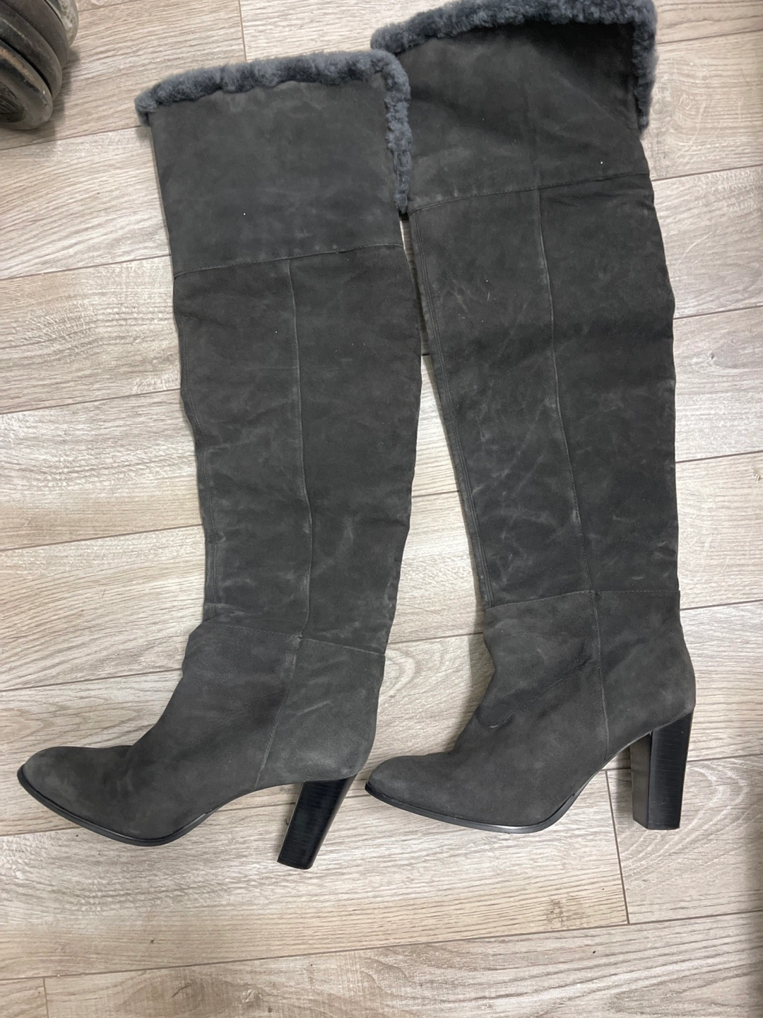 80Selling a pair of gray suede over-the-knee boots! They have a stylish block heel and would be perfect for fall or winter