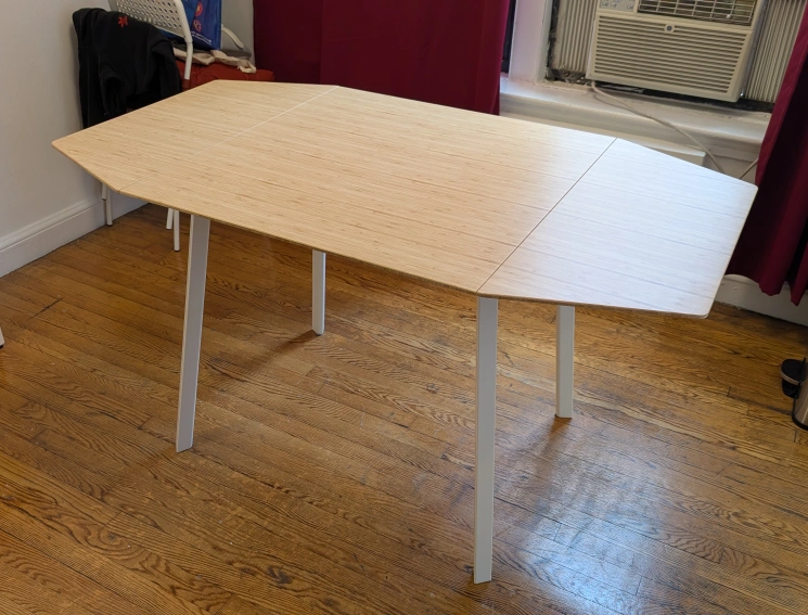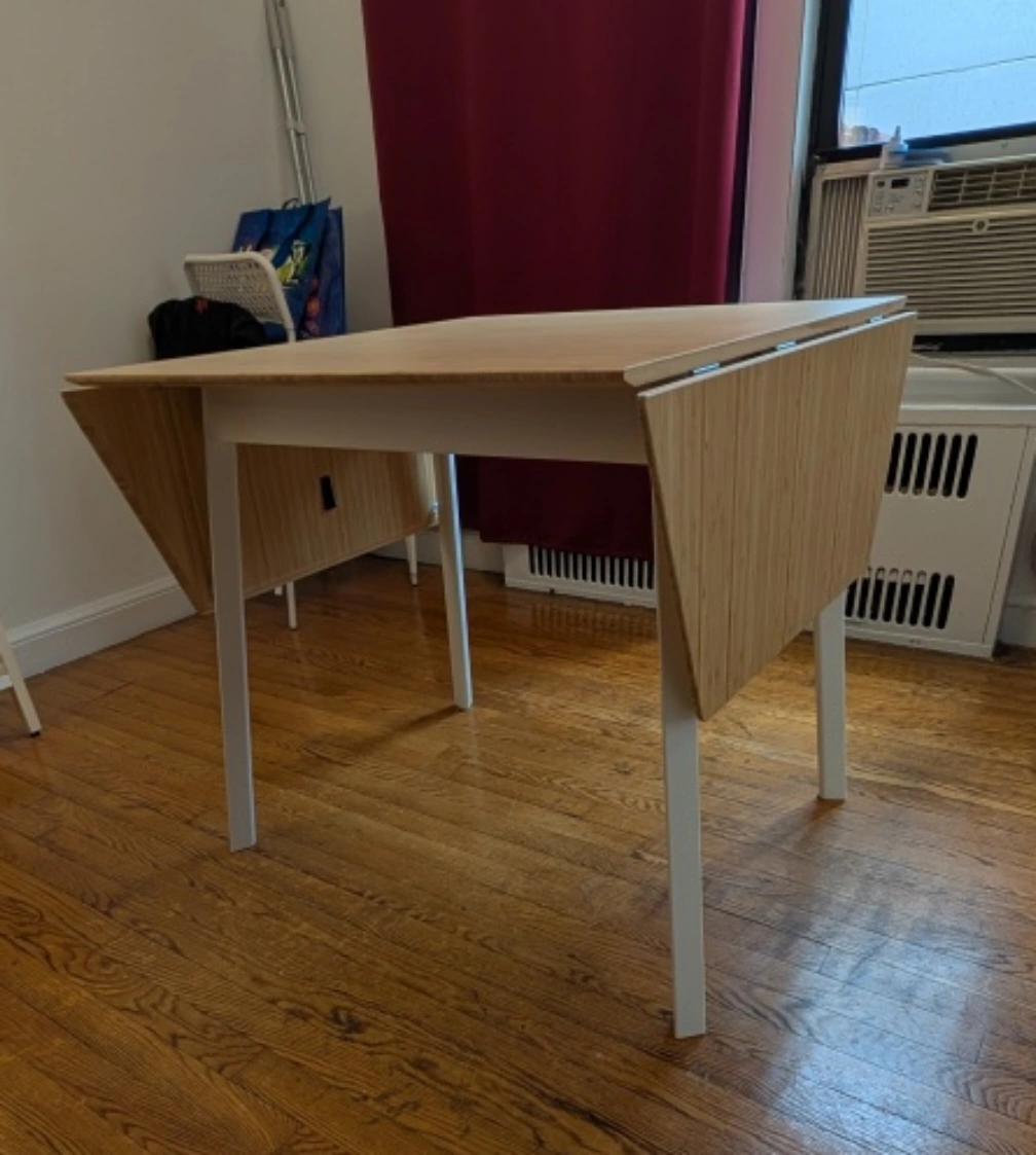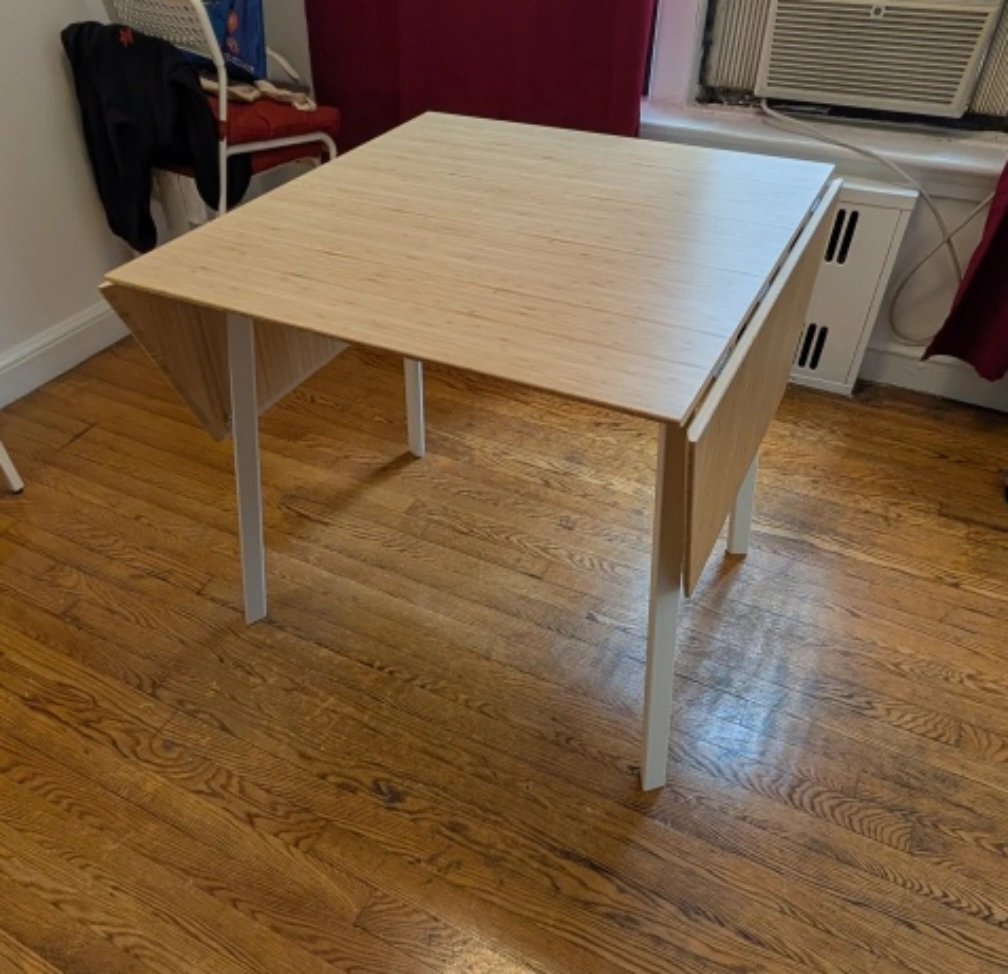 I'm selling an IKEA extendable dining table! It's perfect for small spaces and can be extended when you have guests. The table has a bamboo top and white legs. It's in great condition and ready for a new home! It retailed as "PS2012" at IKEA.