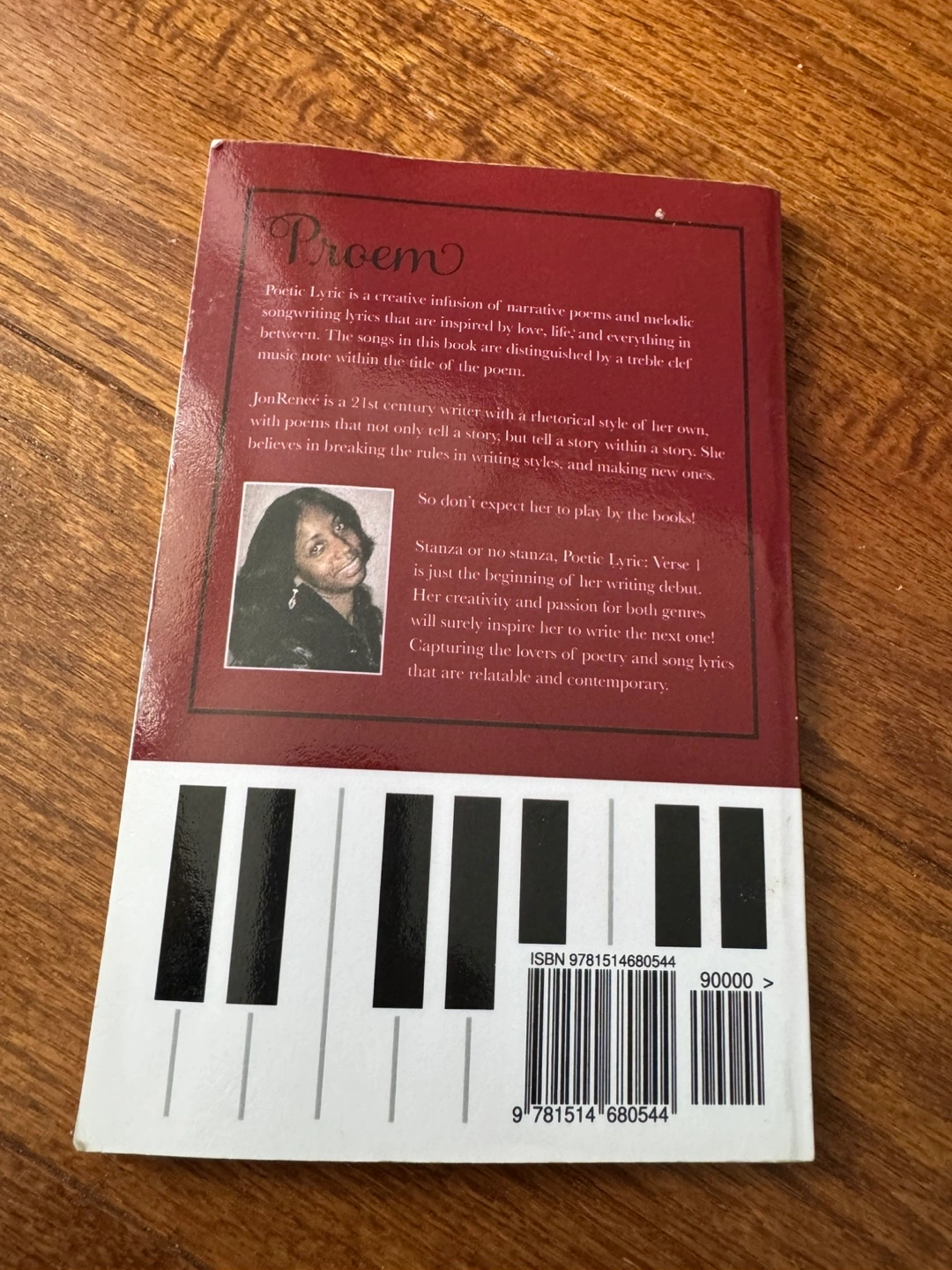 Selling the book Poetic Lyric Verse 1 by Jon Renee. It's a collection of narrative poems and melodic songwriting lyrics inspired by love, life, and everything in between. The book contains poems such as The Color of Love, Alcohols A Stimulant & A Depressant, and Closed Doors. It also includes Hollywood: Haters on Fire and Poetry Becomes Me