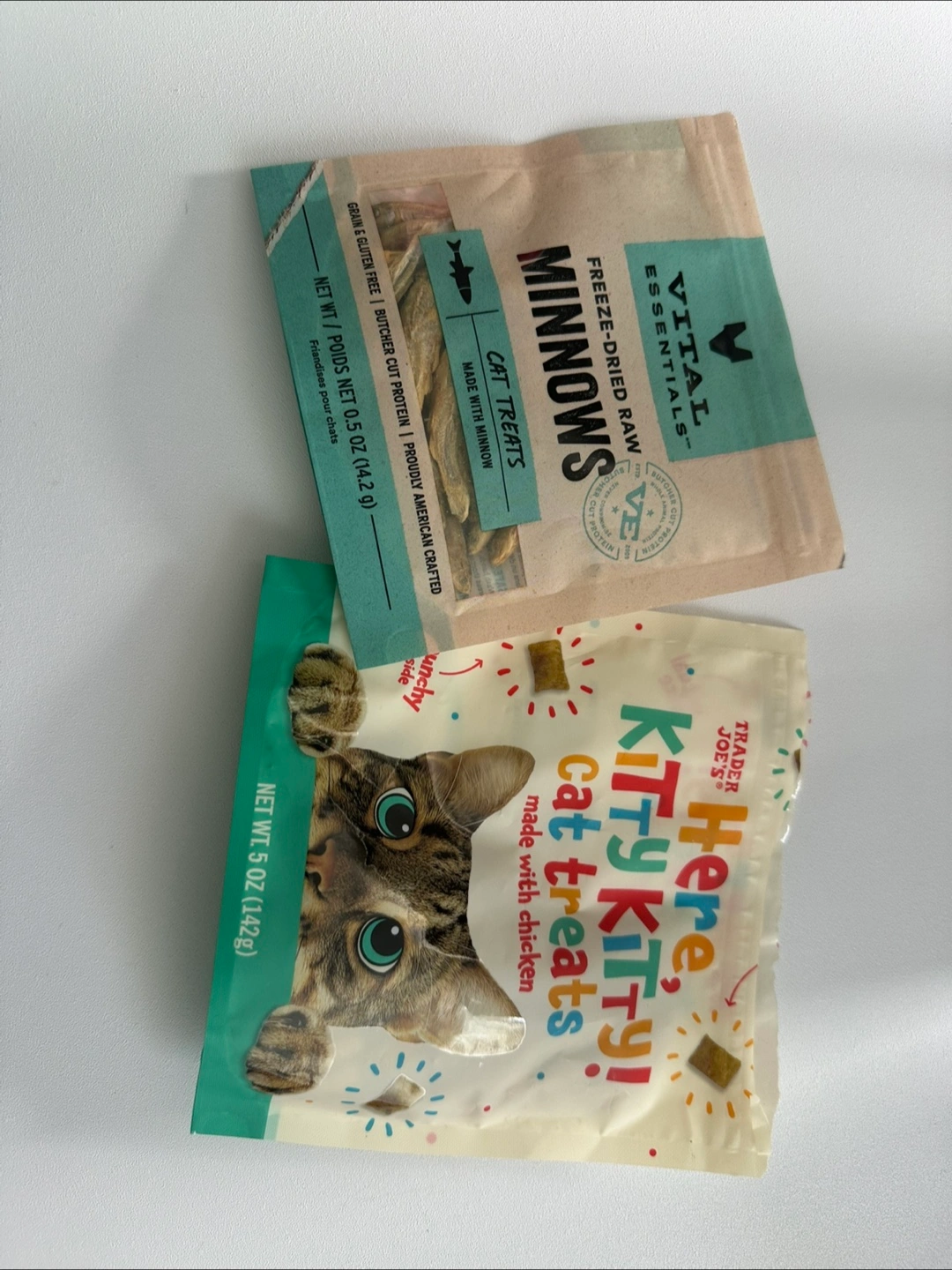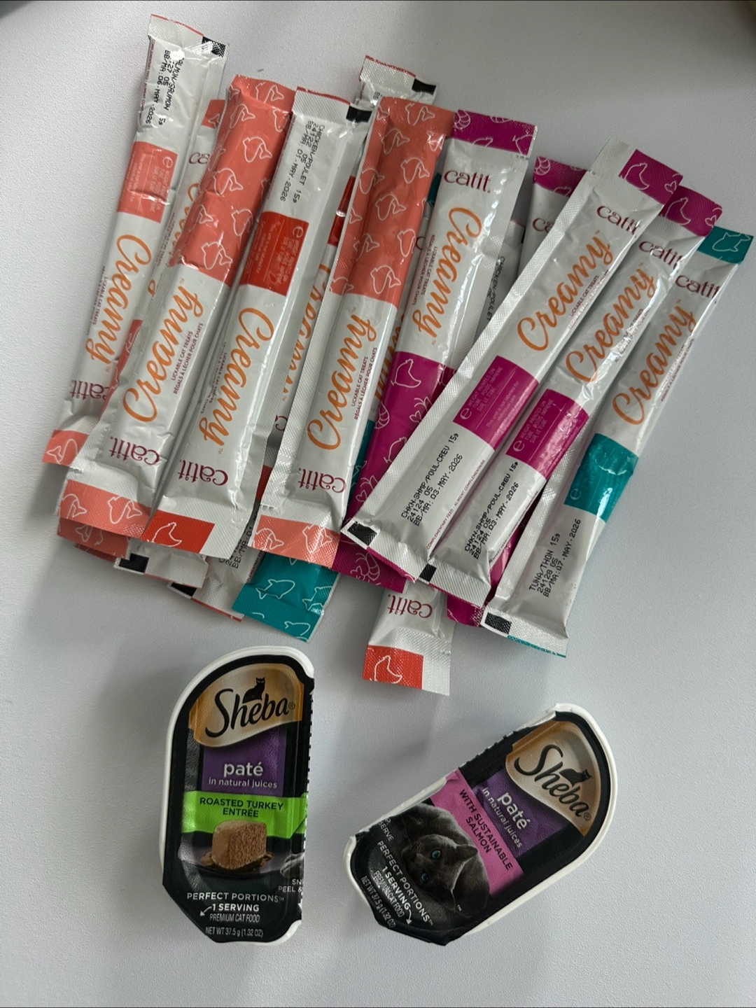 Selling all these cat treats together for $15 Lickable treats & wet food are new Dry cat treats are opened ; tried giving them to my cat but he did not like them