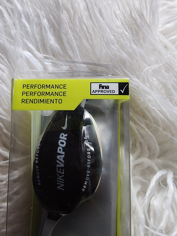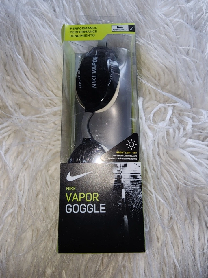 747These Nike Vapor Goggles are brand new in the box! They feature an ultra low-profile design with engineered, drag-resistant lenses. The curved, oversized lens maximizes horizontal and vertical field of view. The soft, flexible gasket enhances comfort without sacrificing performance