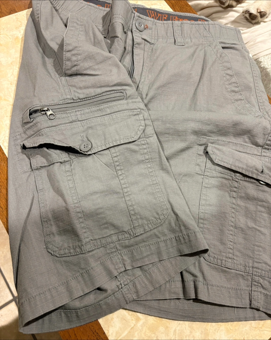 1000+Giving away a pair of Weatherproof Vintage cargo shorts in gray. They're great for casual wear or outdoor activities. The shorts have a relaxed fit and plenty of pockets for storage Size 34. I bought the wrong size for my son.