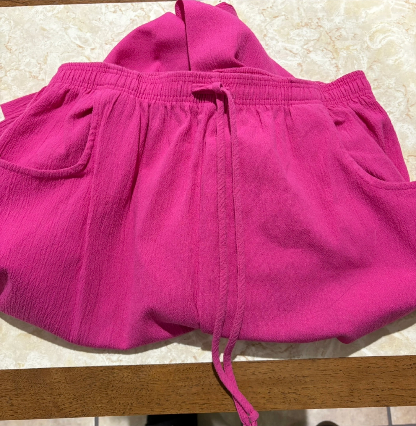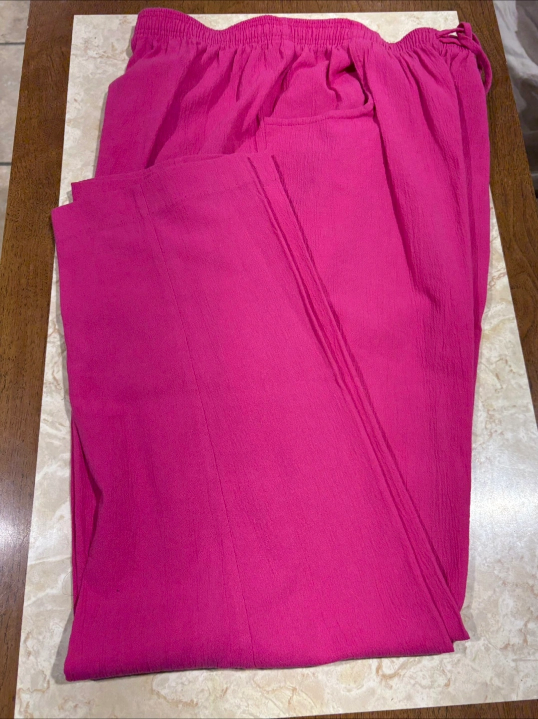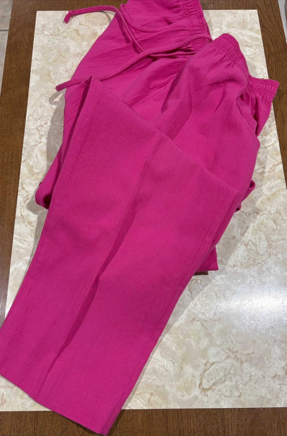 1000+Giving away a pair of pink pants! They have an elastic waistband with a drawstring. Perfect for lounging or casual wear! They now are too large for me but very comfortable. Looking to find a new home