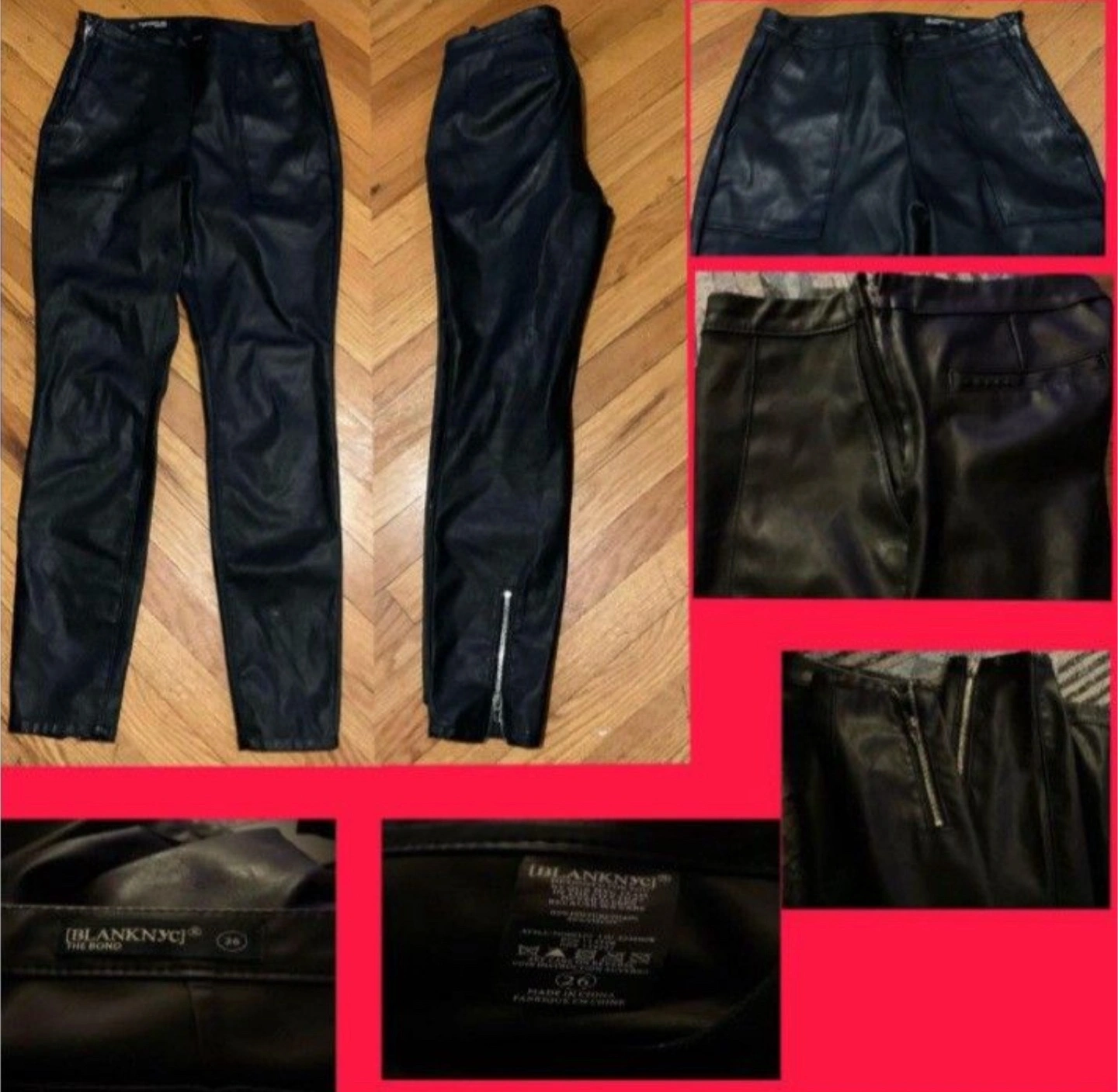 Selling a pair of [BLANKNYC] 'The Bond' faux leather pants in size 26. These stylish pants feature a sleek design and a comfortable fit. Perfect for adding a touch of edgy sophistication to your wardrobe!