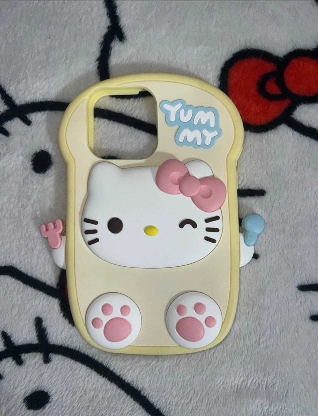 26Selling a super cute Hello Kitty phone case for iPhone 13/14 Pro Max! The case is yellow and has a fun toast design. It's in great condition and ready for a new home