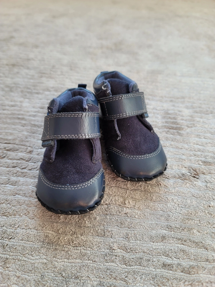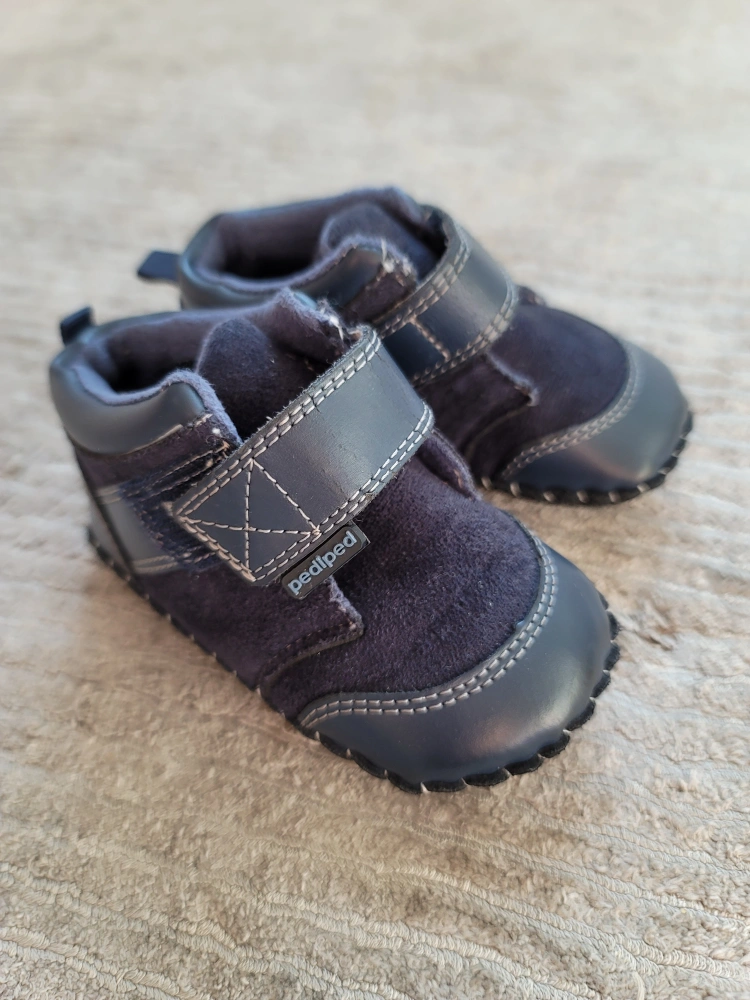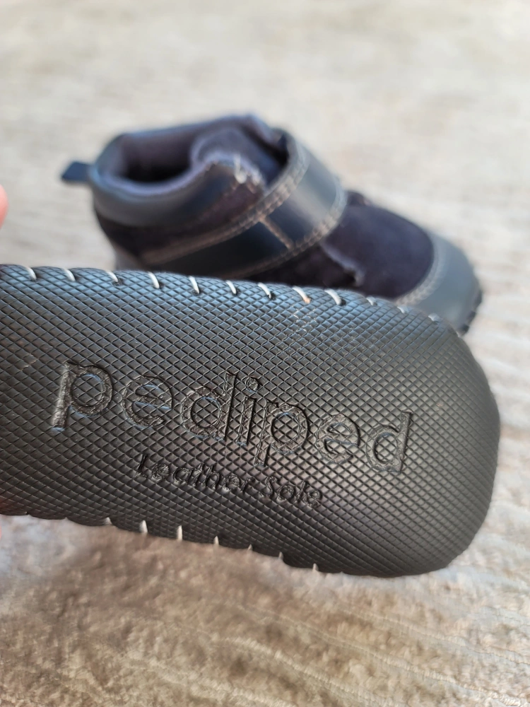 These adorable pediped baby shoes are in a lovely navy blue color. They feature a convenient velcro strap for easy on and off. Perfect for your little one's first steps!