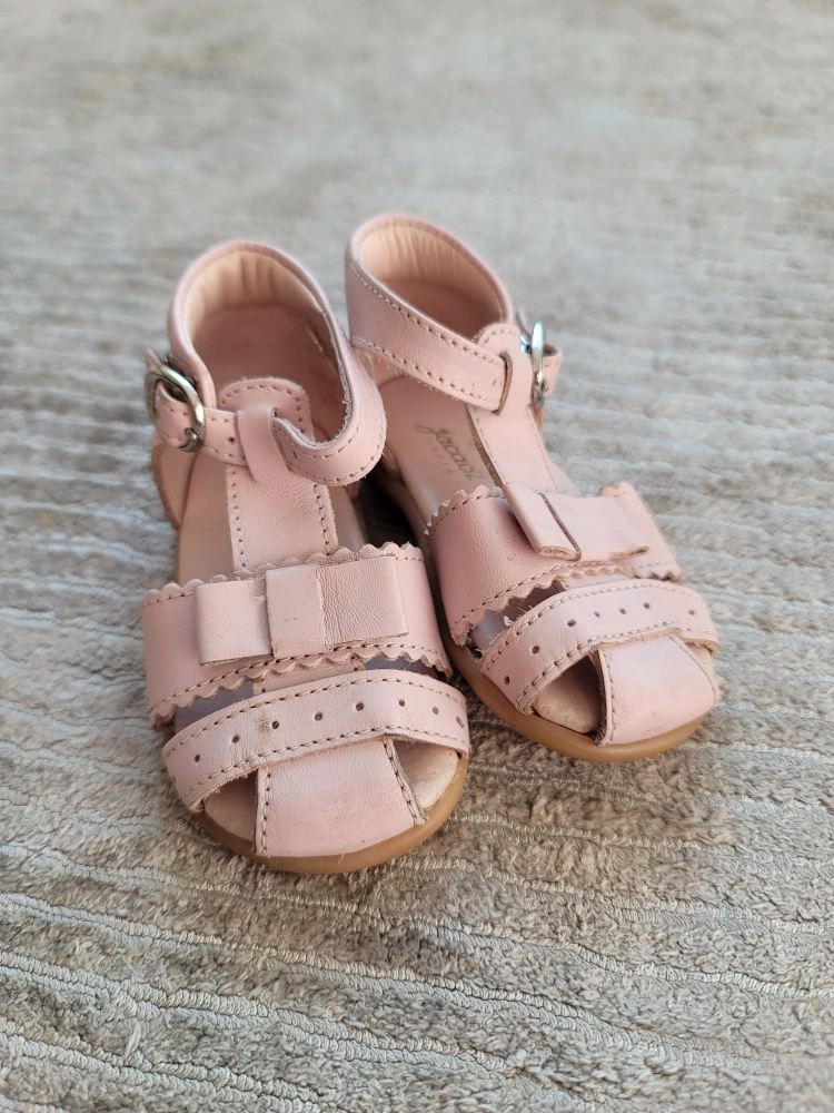 Selling a pair of adorable Jacadi Paris sandals in a lovely pink color! They're made from leather and are in good condition. The size is 18, as marked on the sole. These sweet sandals are perfect for your little one!