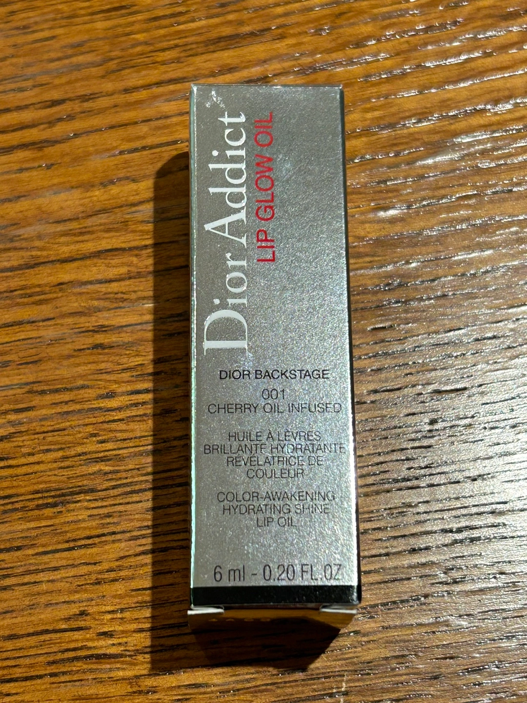 It's a cherry oil infused lip oil that gives a color-awakening hydrating shine. Size is 6ml - 0.20 fl.oz