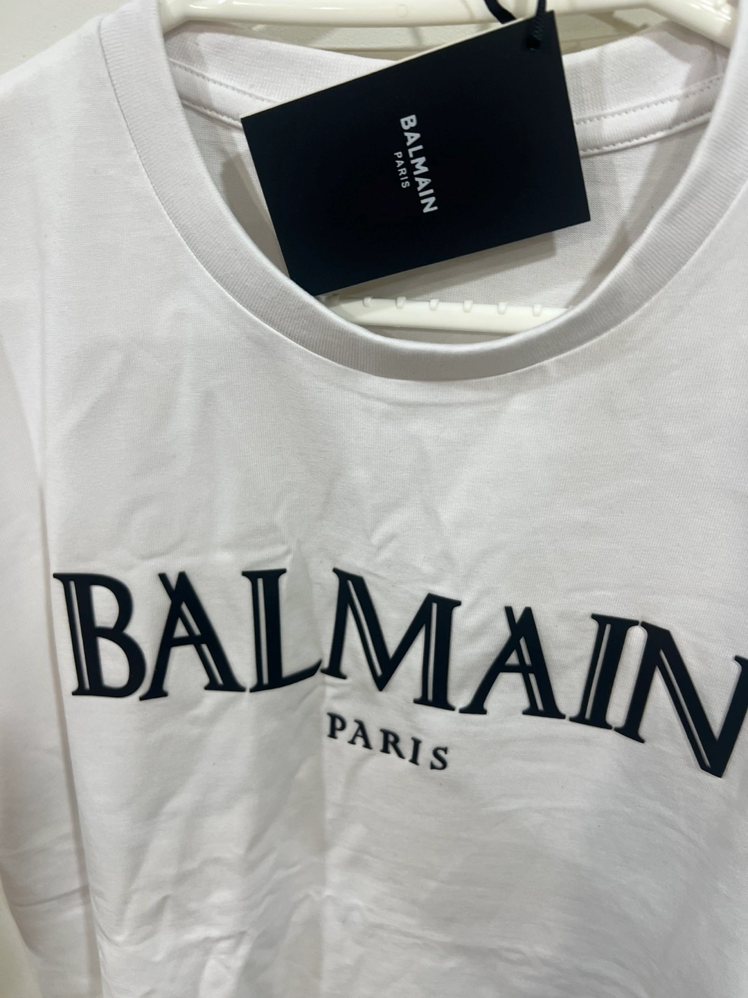 Selling a Balmain Paris white t-shirt! It's in great condition and ready for a new home. The classic design and comfortable fit make it a stylish addition to any wardrobe