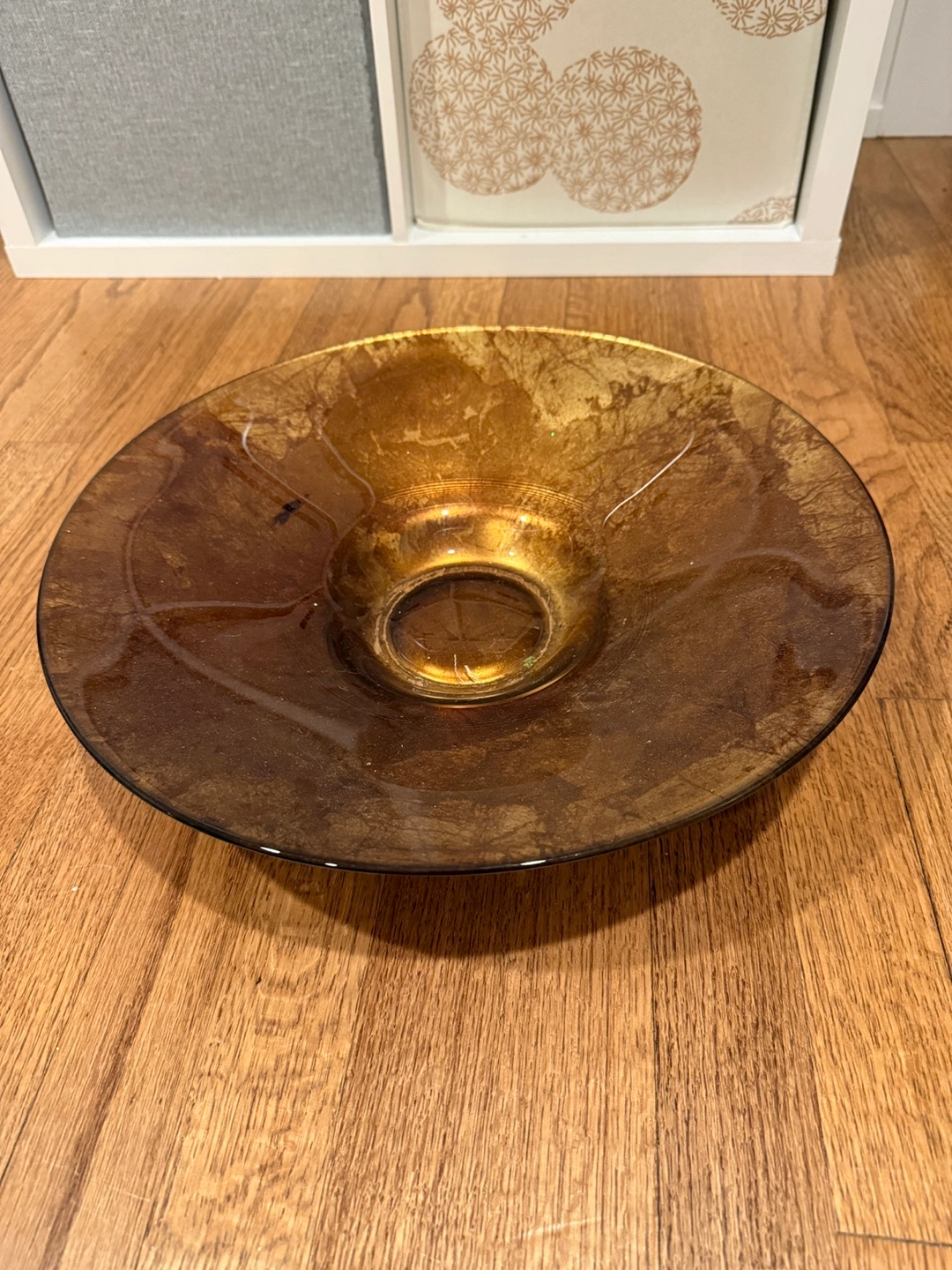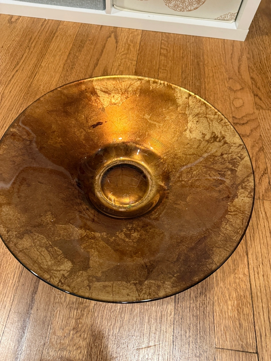 Selling a decorative gold glass bowl. It would look great as a centerpiece or accent piece in your home. The bowl is in good condition and ready for a new home! Pick up by Irving Park and Cumberland