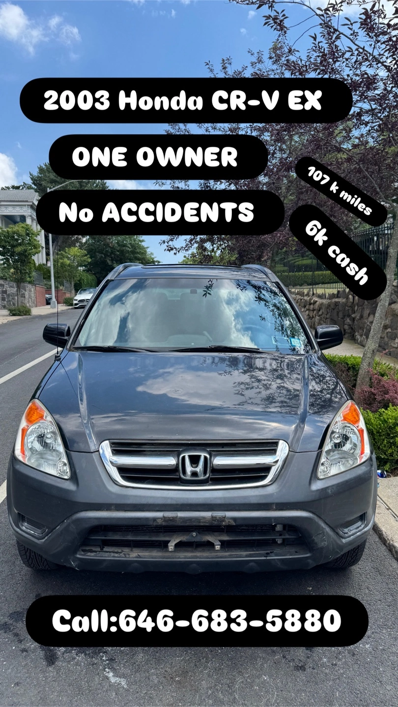 2003 HONDA CR-V EX 107k miles 4 DOOR WAGON/SPORT UTILITY 2.4L 14 F GASOLINE ALL WHEEL DRIVE very clean and nice ride. Half leather sunroof Bluetooth 3 keys ONE OWNER NO ACCIDENTS CLEAN CARFAX $5,995 Cash price