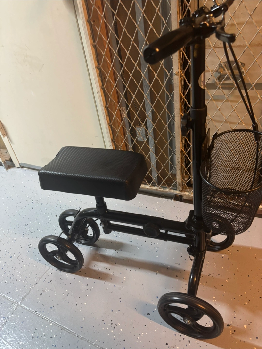 Selling a knee walker scooter. It's in great condition and ready to help you get around! It features a comfortable seat and a convenient basket for carrying your essentials. I have 2 of them.