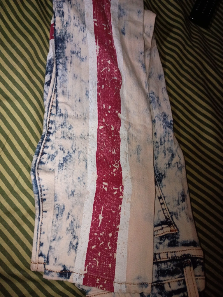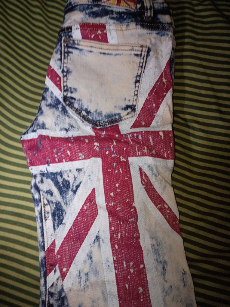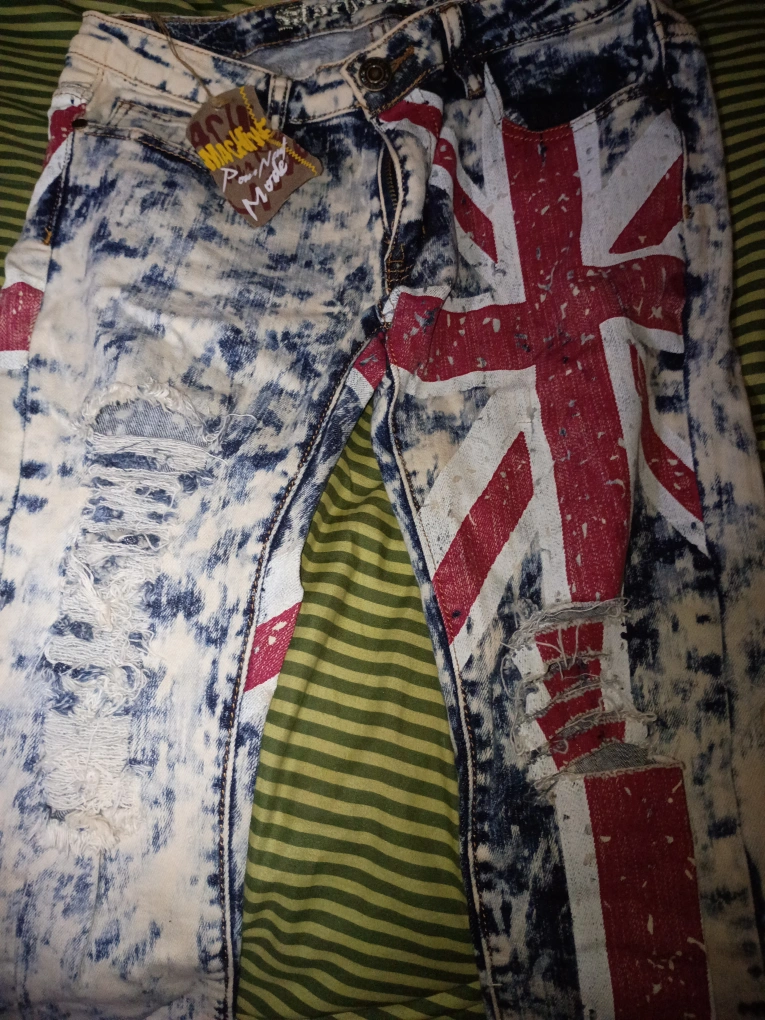 10Selling a pair of Machine Velle Mode jeans. They are a size 31 and feature a unique Union Jack design. They are in good condition!