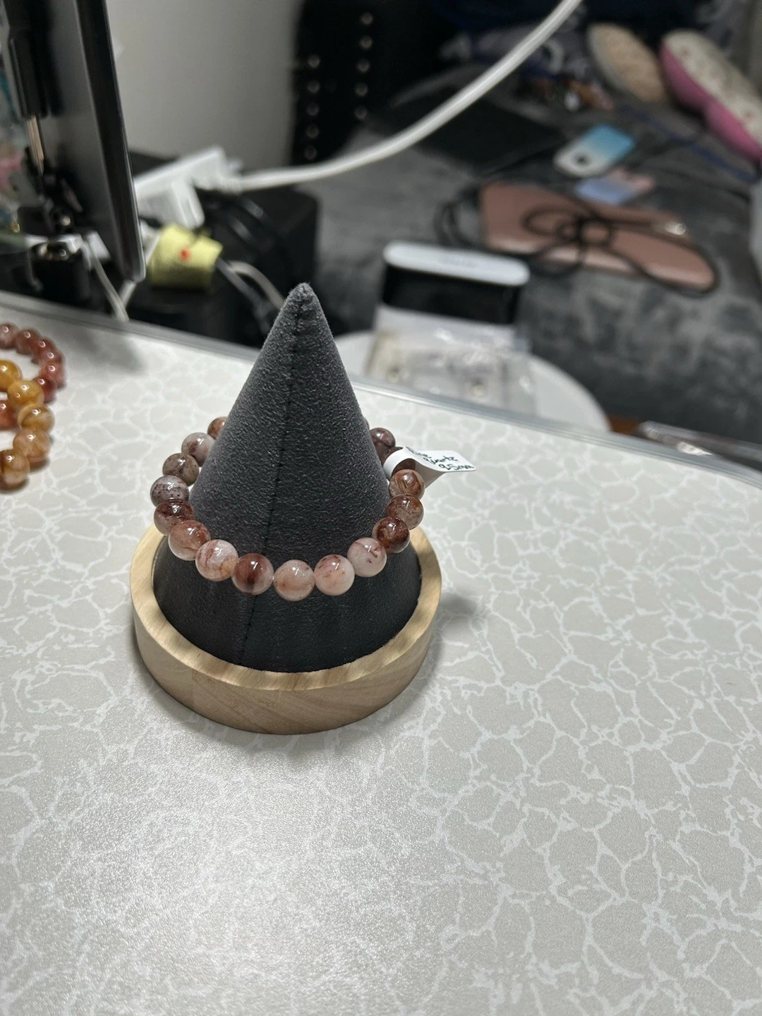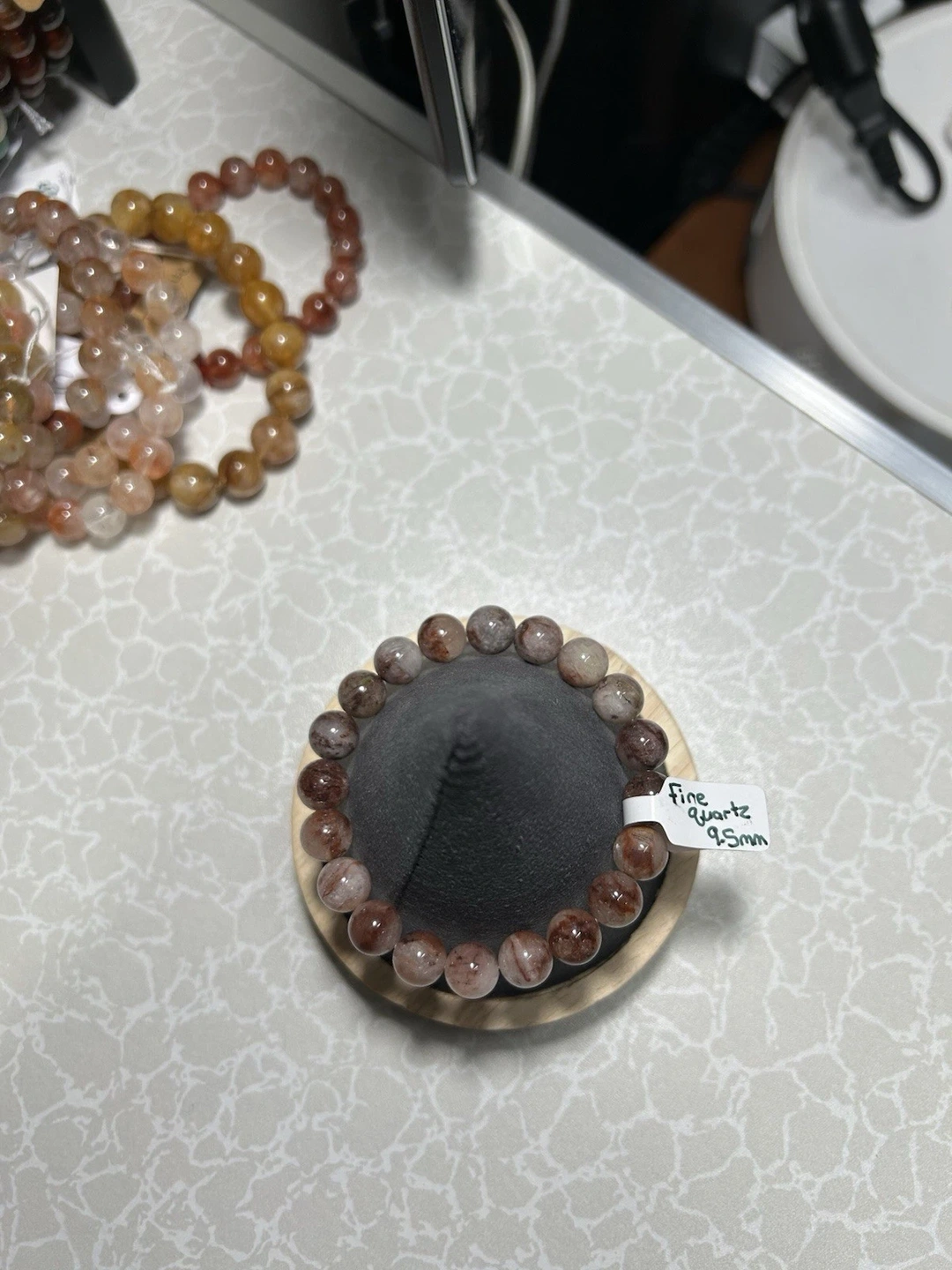 This is a lovely beaded bracelet featuring round Quartz beads in brown and clear. The beads are approximately 9.5mm in size and the bracelet has a comfortable stretch closure. It's a beautiful gemstone piece.