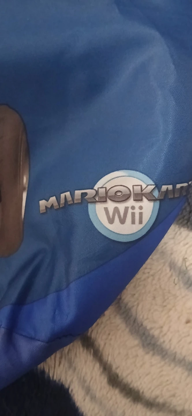 This Nintendo Mario Kart Wii sleeping bag features Mario and Luigi. It's blue with a racing theme. Perfect for any young Mario Kart fan!