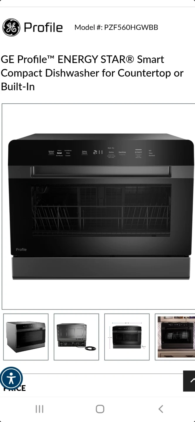 GE Profile ENERGY STAR smart compact dishwasher. Model PZF560HGWB. It's suitable for countertop or built-in installation. Includes 6 place settings.