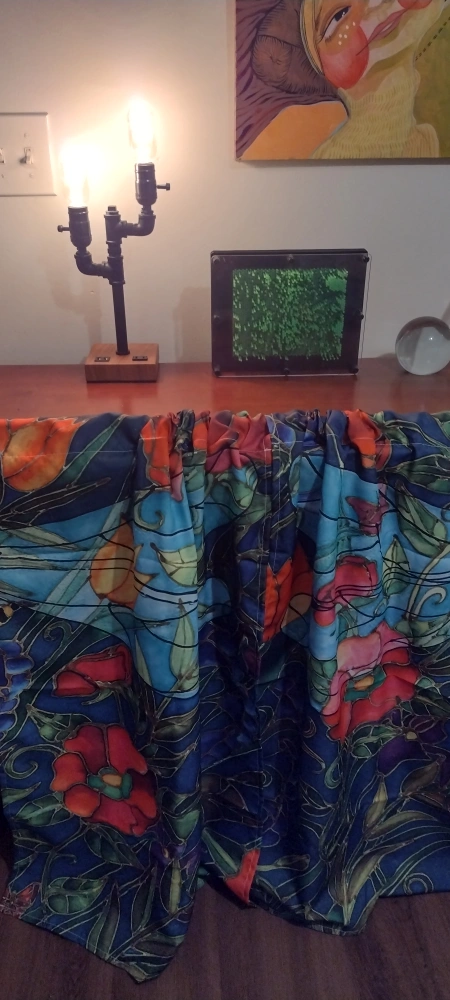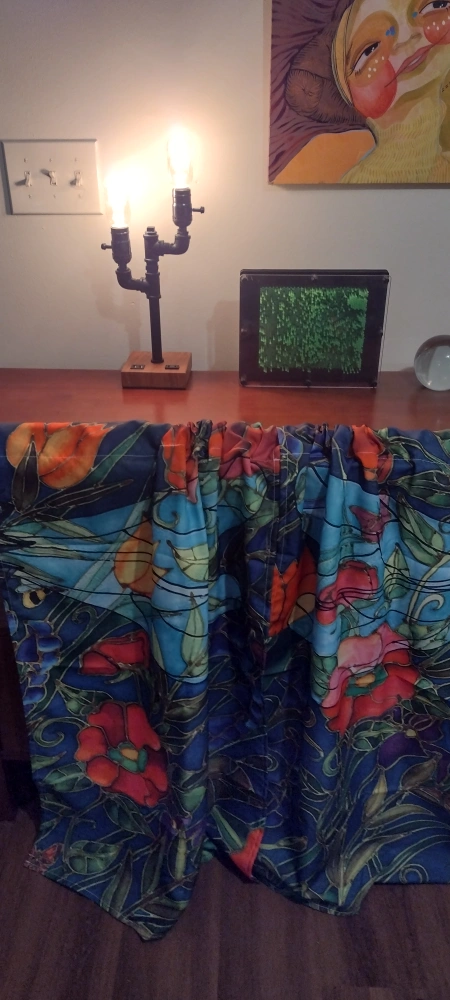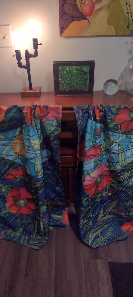 166I have several pairs of curtain panels with a beautiful floral print. All are new, never used, and some are still in their original packaging, so they're in perfect condition! The colors are vibrant, featuring red, blue, and green tones. These would add a lovely touch to any room!