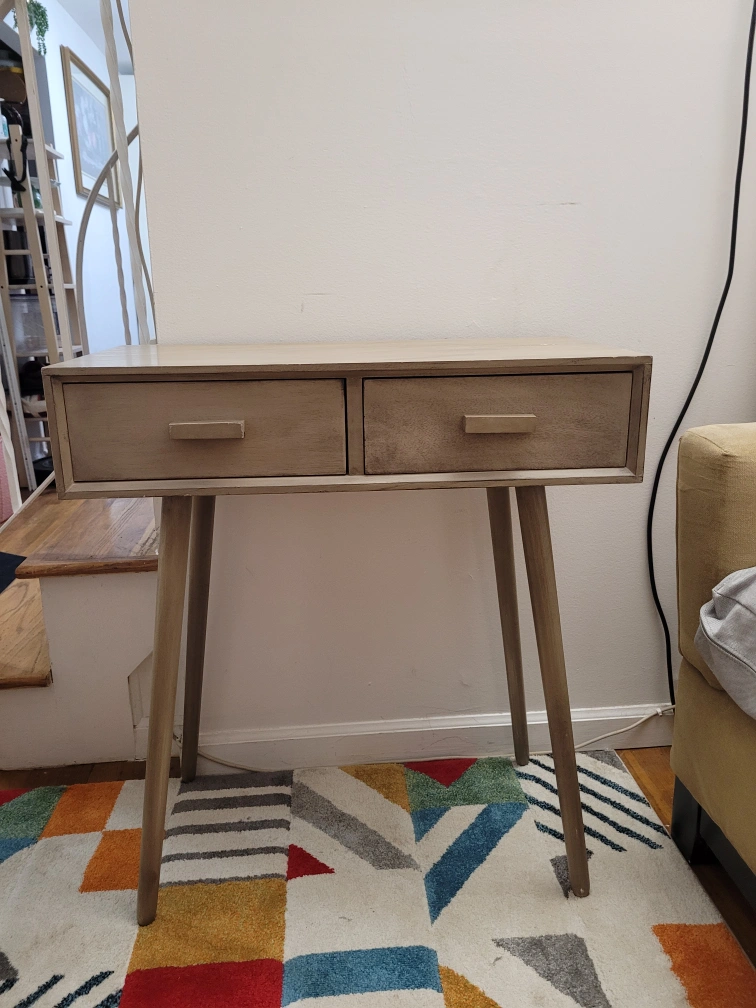 Selling a cute console desk table with two drawers! It's in great condition and would look great in an entryway or living room. You can also use as a desk, vanity table or as a nigh stand. Legs are removable. Pick up in Whitestone, Queens.