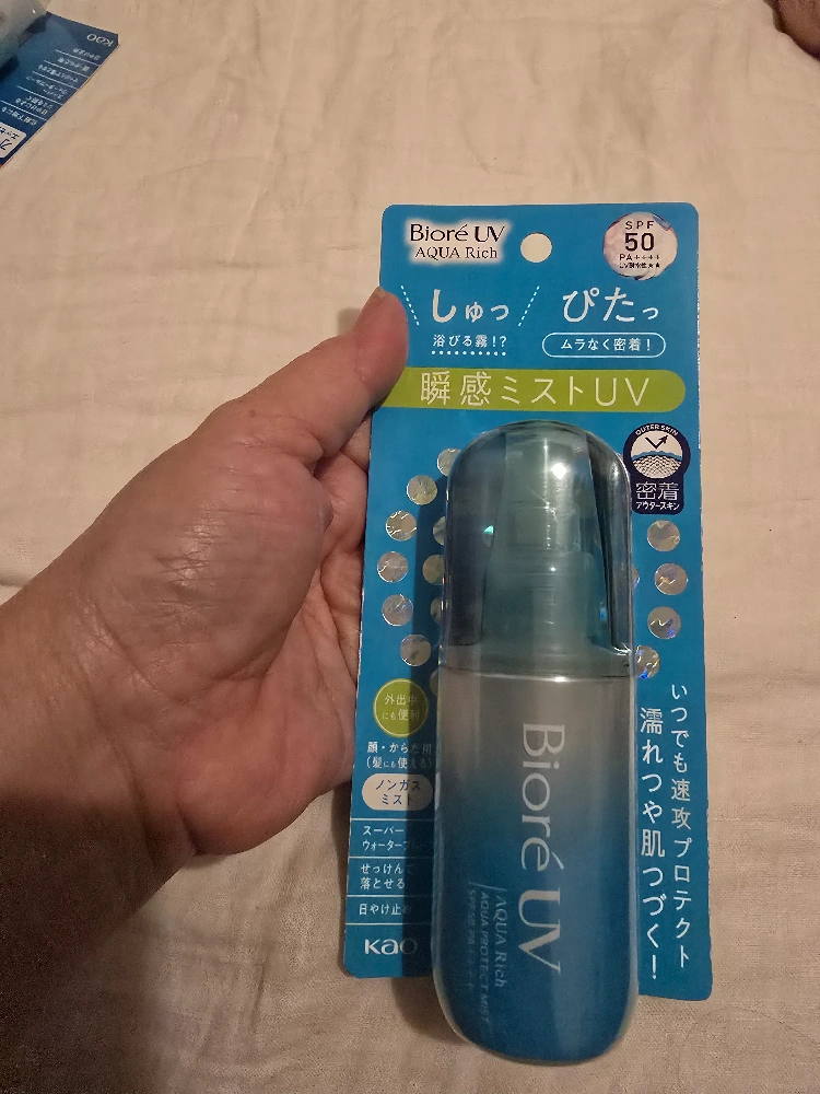 Selling a Biore UV Aqua Rich Aqua Protect Mist with SPF50! This mist provides outer skin UV block, it is a non-gas mist, and is fast absorbing. It can be used on the face, hair, and body. Perfect for sun protection!