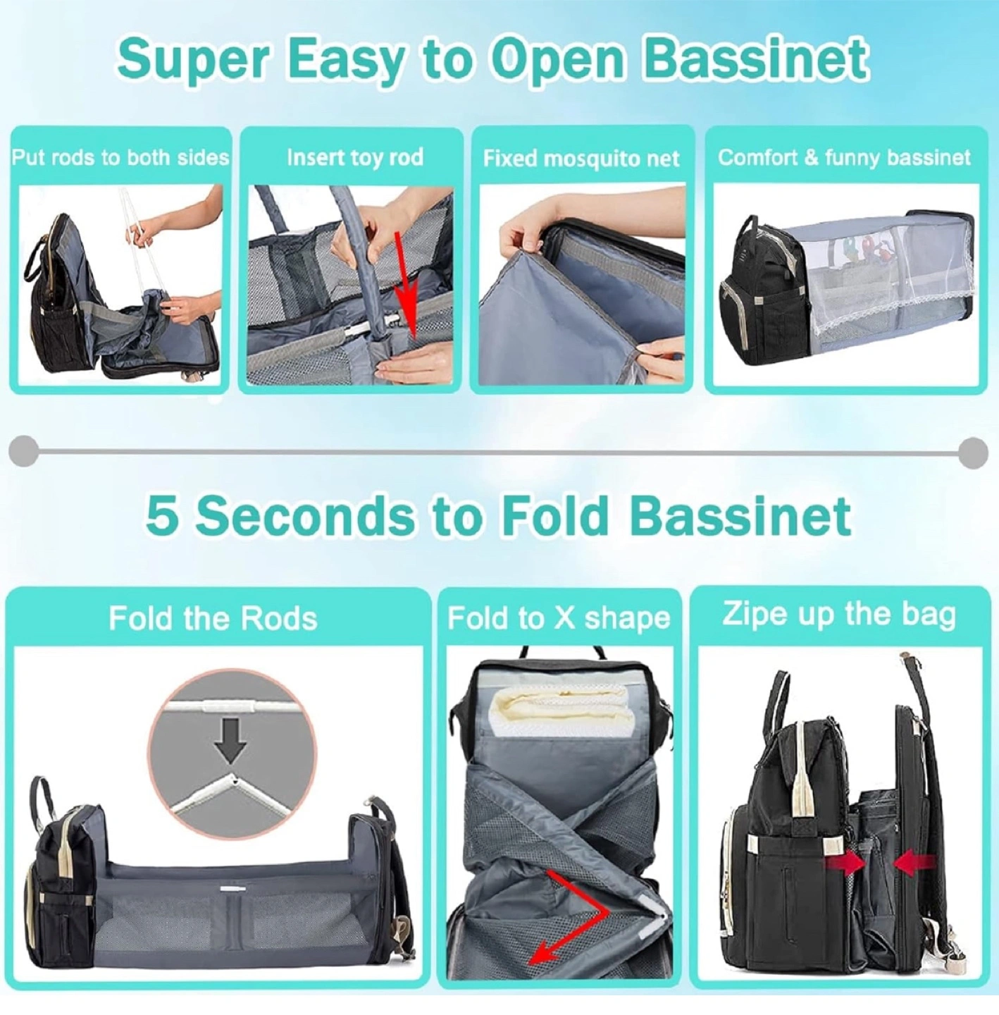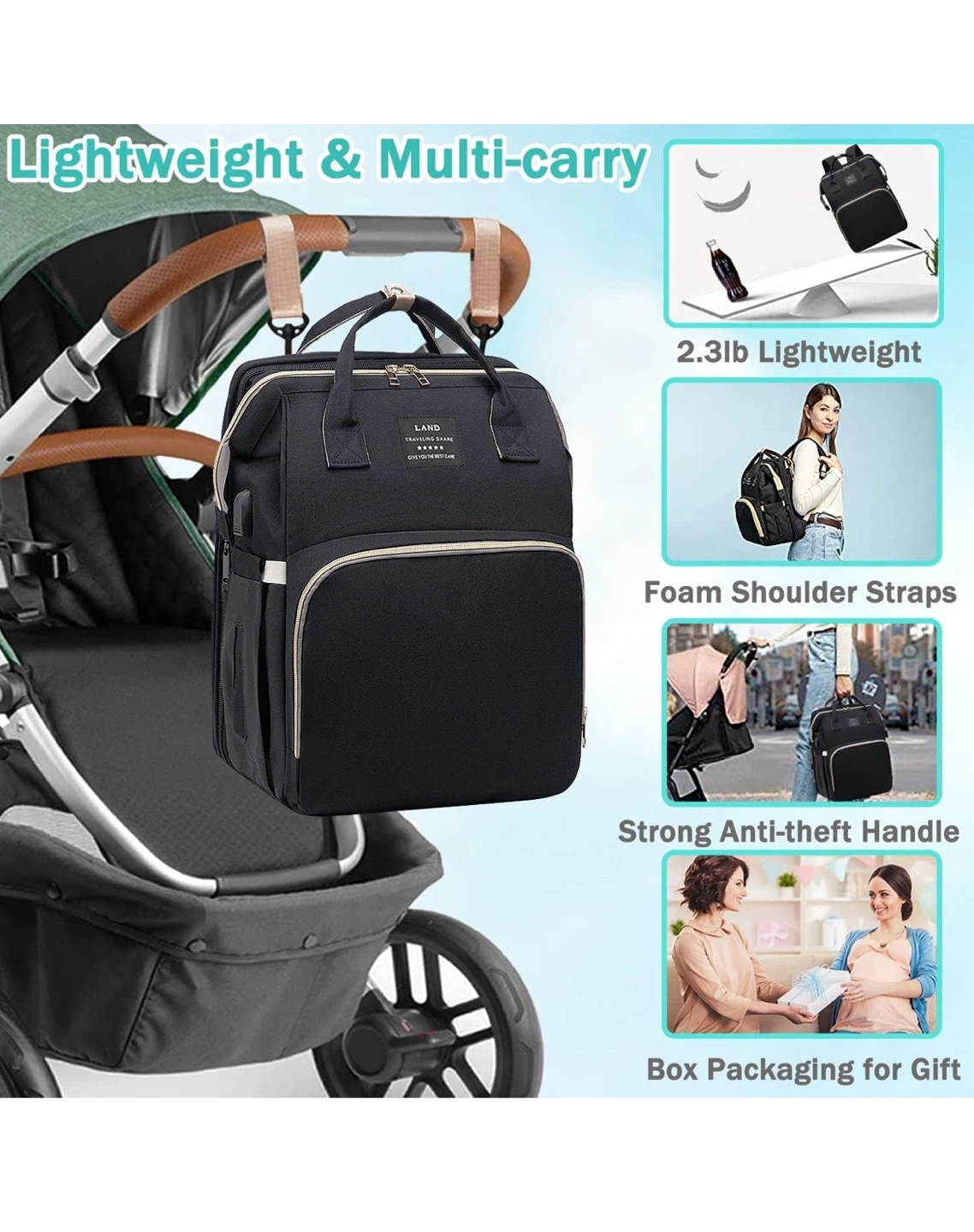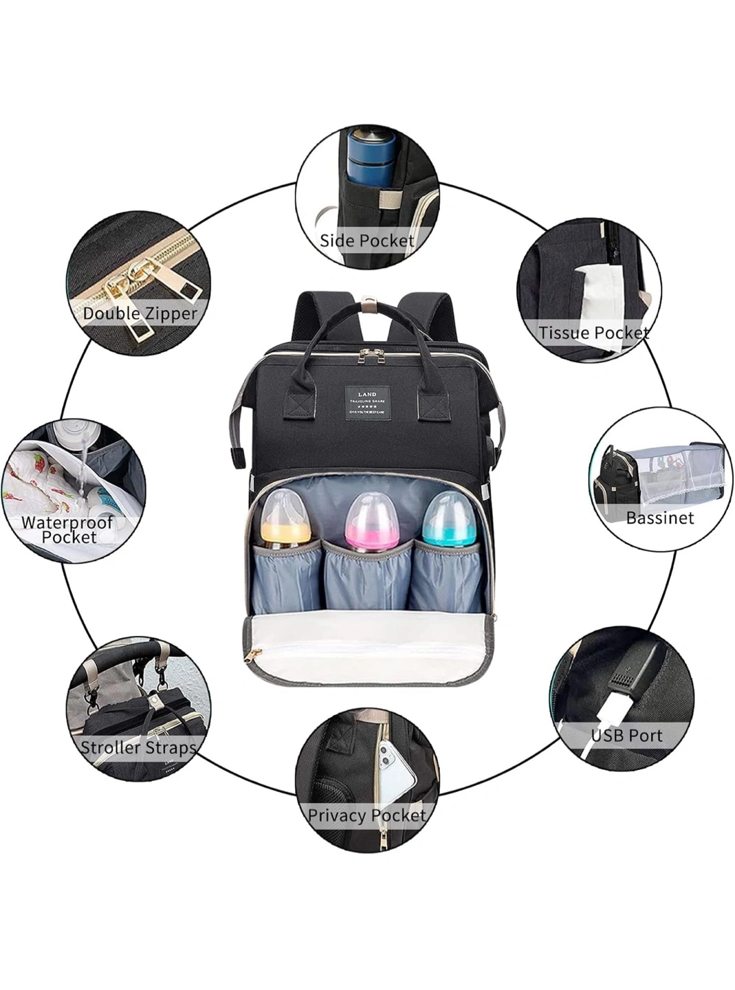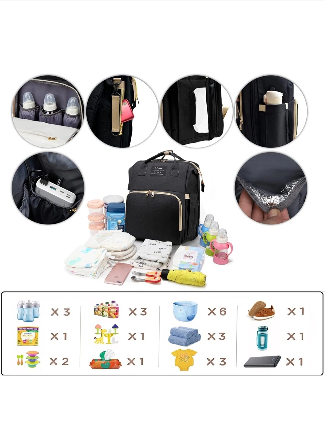 Diaper Bag Backpack – Large Capacity Baby Diaper Bag with Changing Pad & Travel Bassinet, Waterproof, Multi Function Baby Bag with USB Charging Port, Black. Opened but never used, no tags. Great diaper bag that I didn’t get to use. Has tons of room for everything you need on the go and for travel. Purchased for $50 plus tax. Located in Staten Island, NY 10312. Local delivery available for a small additional charge.