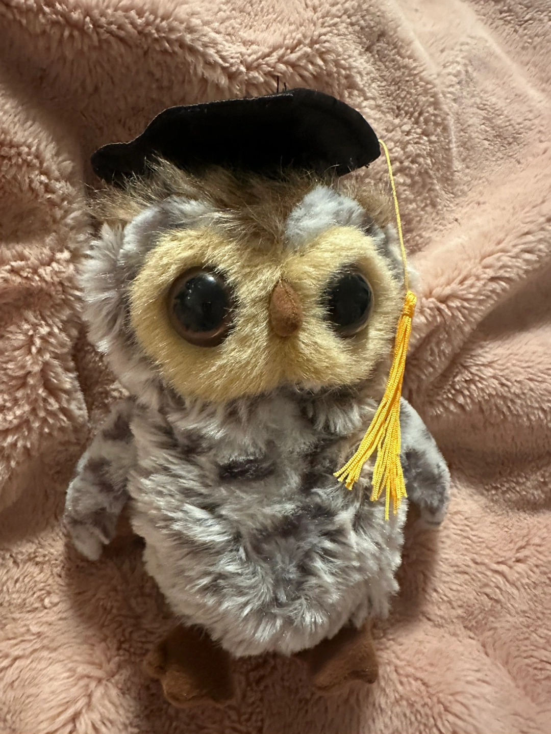 This adorable Plushland owl is all dressed up for graduation! It's a cute and cuddly plush toy, perfect for celebrating a recent grad or just adding a touch of whimsy to your space