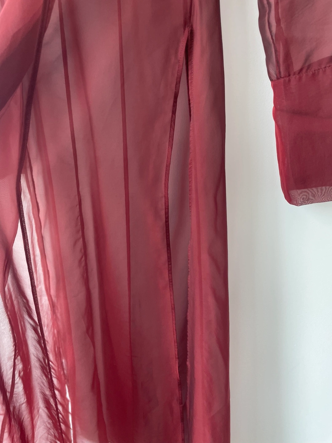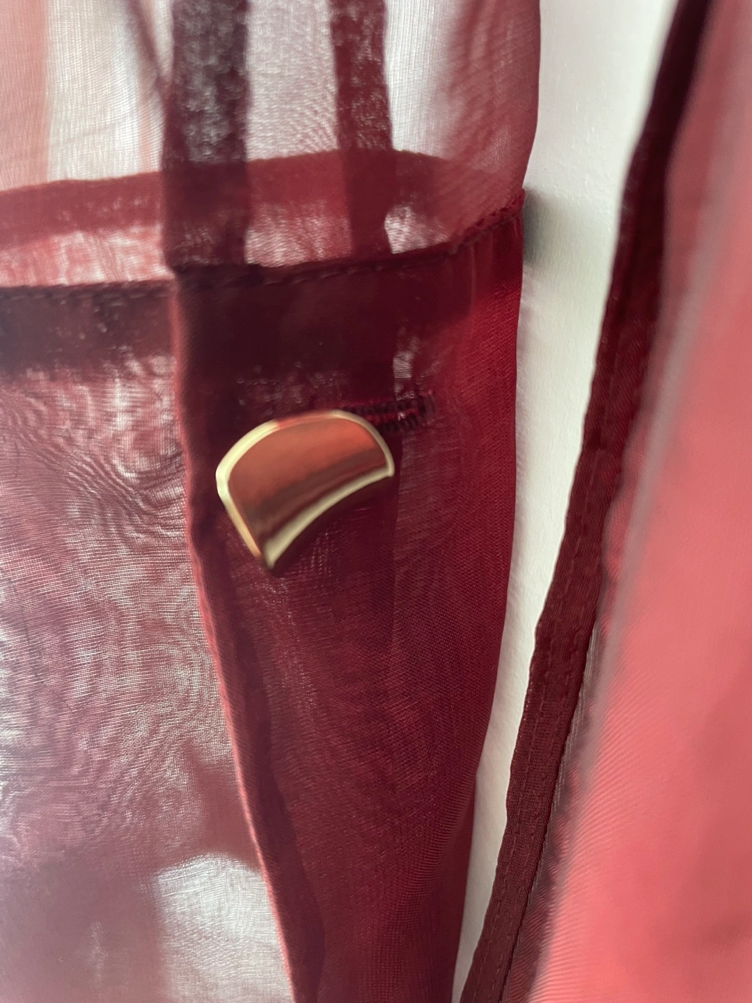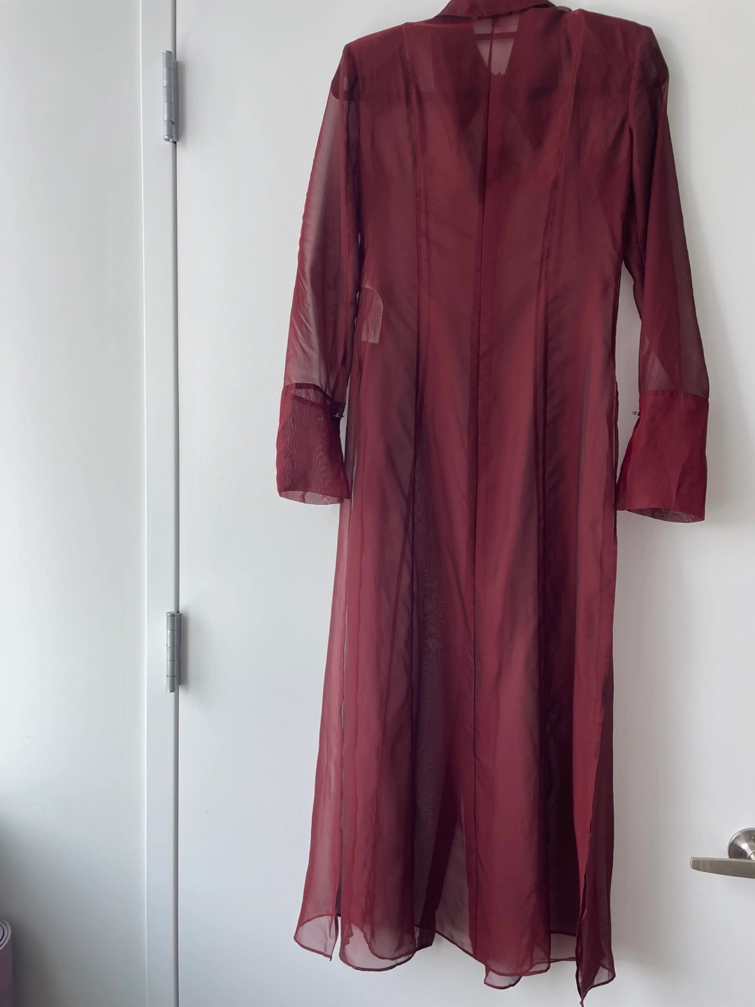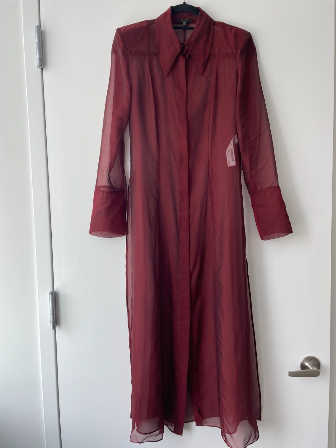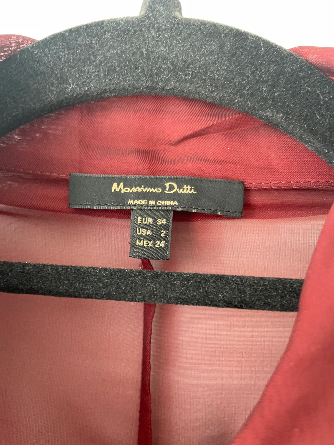 10Maroon color and is a size 2. Side slits and gold buttons. With small shoulder pads. New, never worn.
