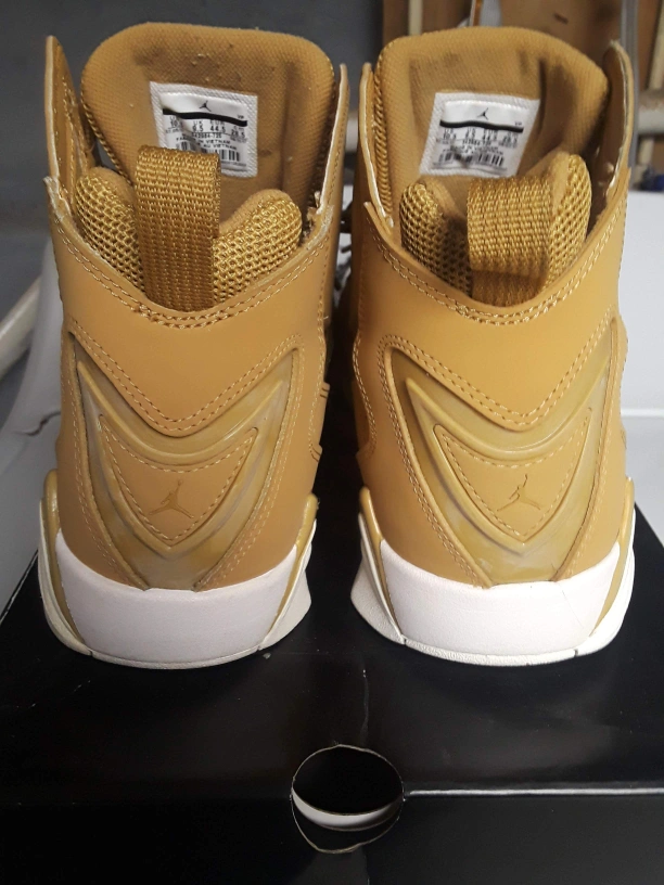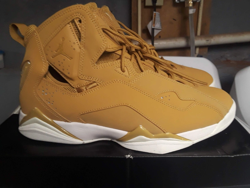 Selling a pair of Jordan True Flight sneakers in a stylish wheat gold color! These shoes are in great condition and ready for a new home. They are a size 10.5 US. Perfect for basketball or casual wear!