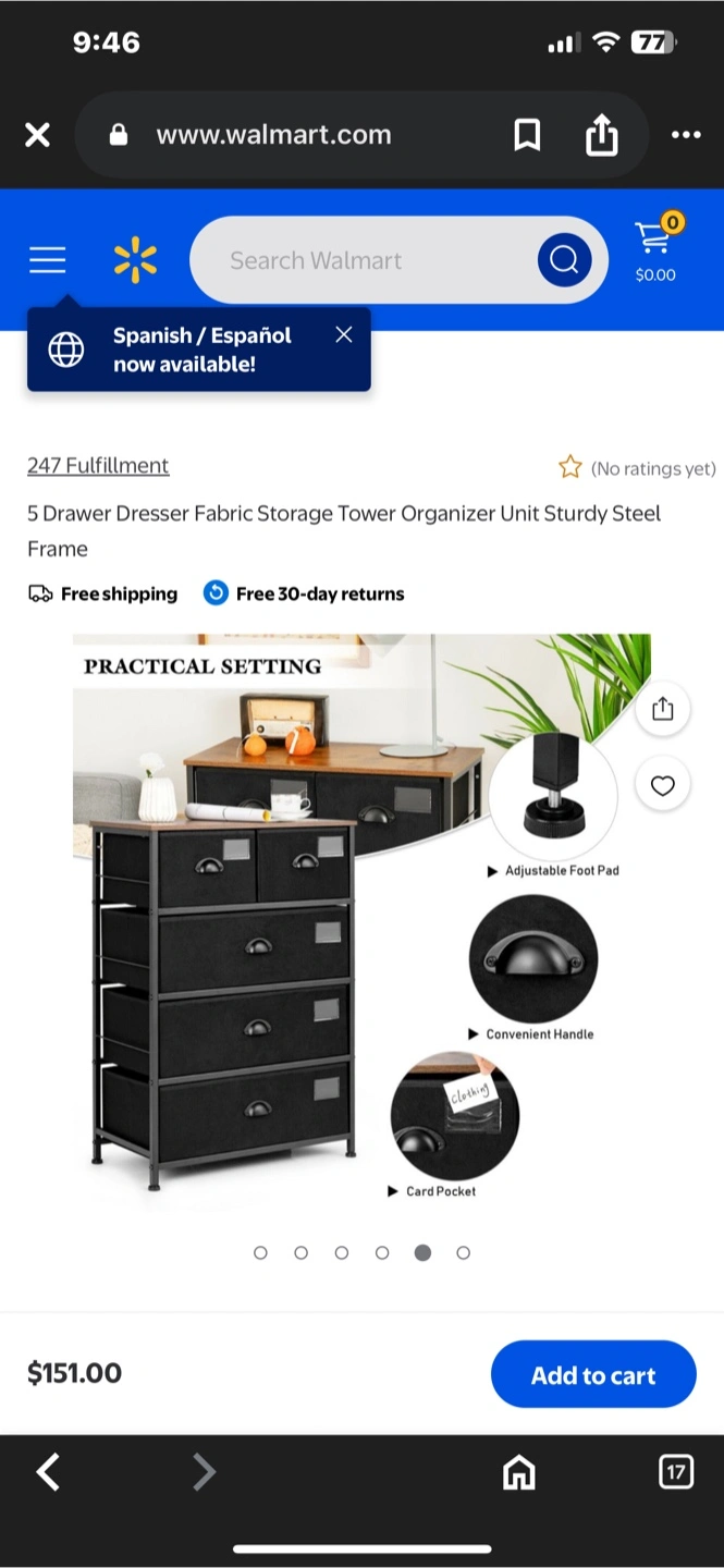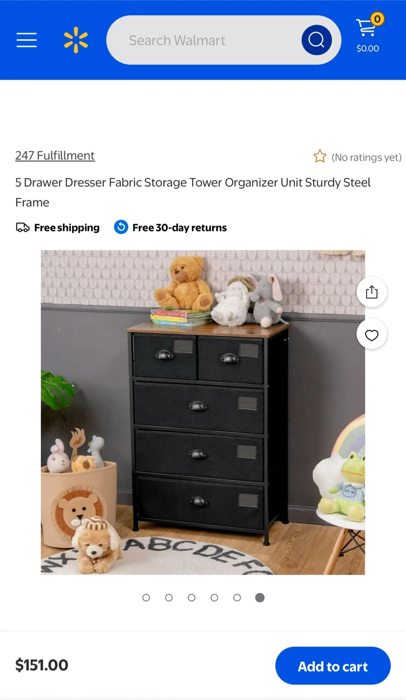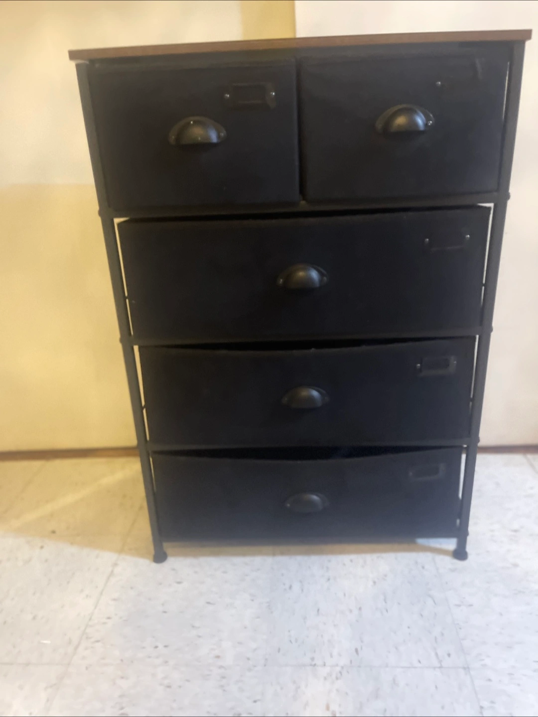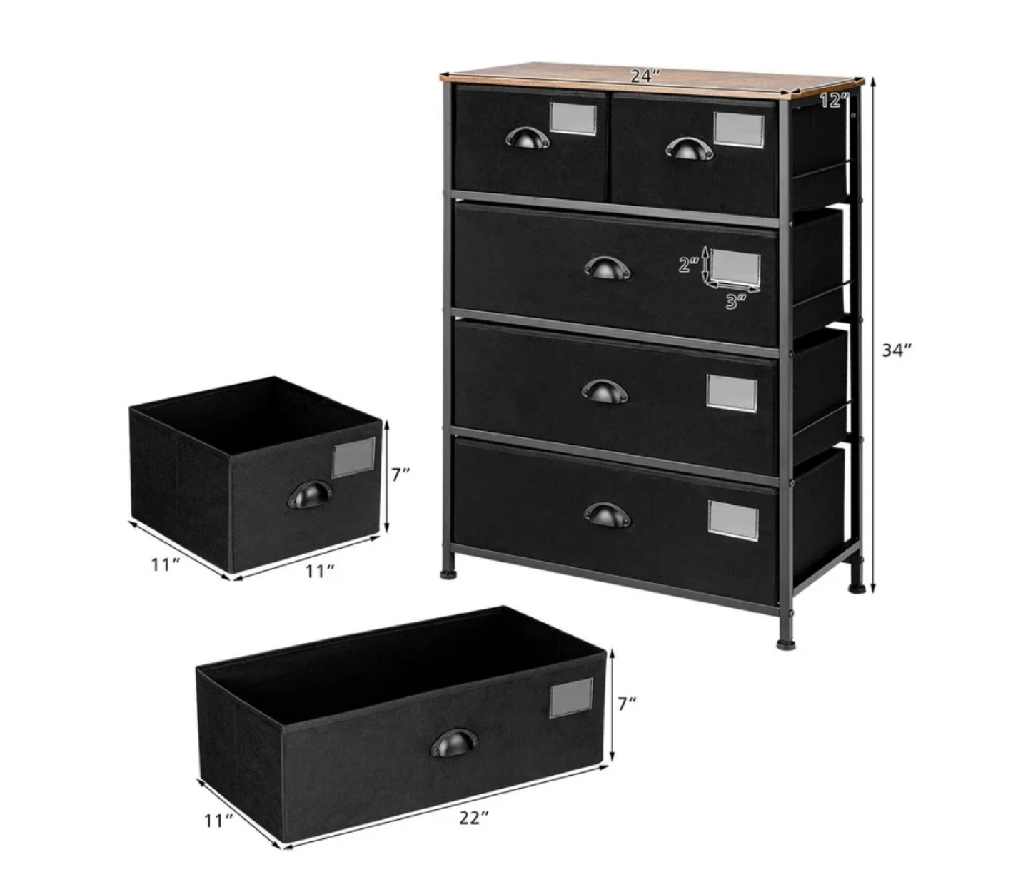 85This is a 5-drawer dresser fabric storage tower organizer with a sturdy steel frame. It's in great condition and ready to help you organize your space! Dimensions are approximately 34" tall, 24" wide, and 12" deep. The drawers are 7" tall and either 11"x11" or 11"x22". Originally bought for $151