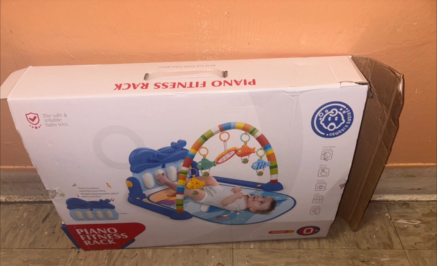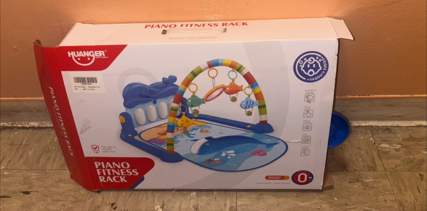 1000+Selling a HUANGER Piano Fitness Rack! It's a great play gym for newborns and up. The box shows it has a foot motor and visual development features. It's designed for early education and provides safe, reliable entertainment for your little one