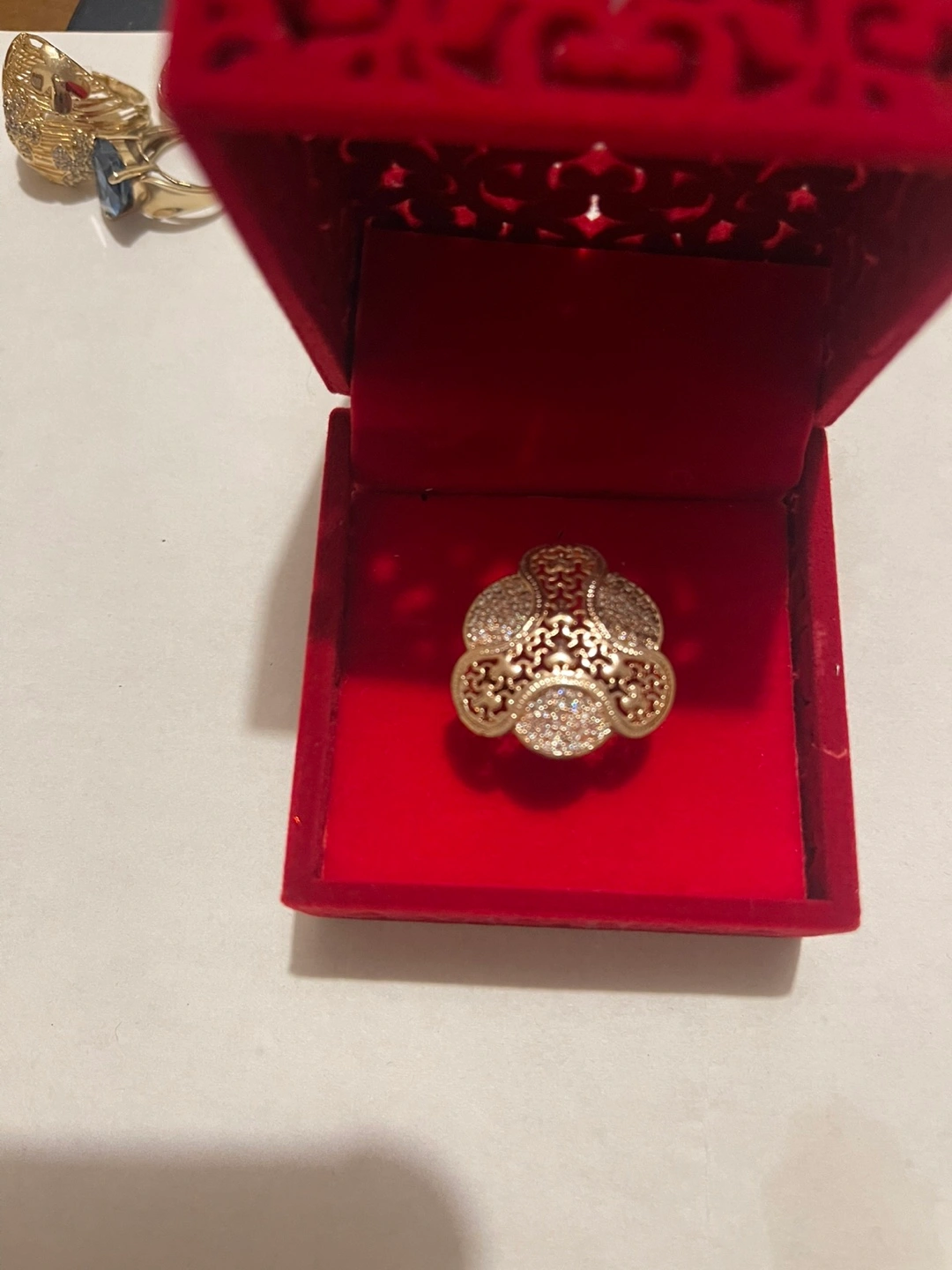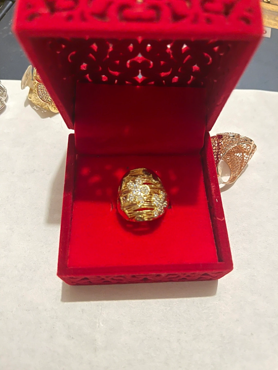 Selling a beautiful ring that's a size 7! It comes with a lovely red box, perfect for gifting or keeping it safe. The rings are new and ready to add an exotic look to your outfit.
