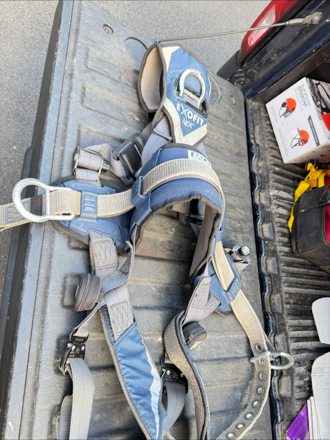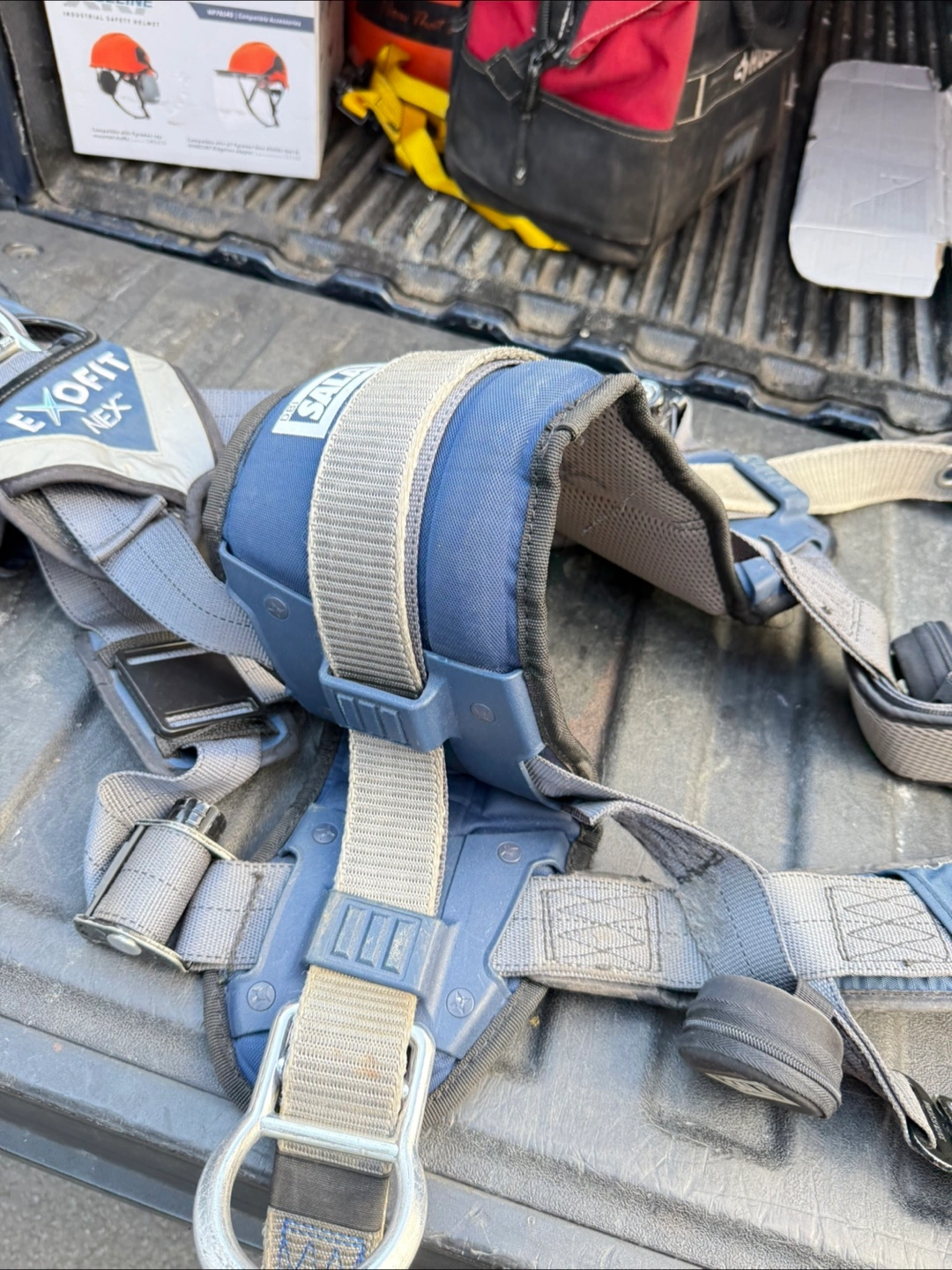 165Selling a DBI Sala ExoFit NEX safety harness. It's in good condition and ready for use on the job site. This harness is designed for comfort and safety, with features like breathable padding and easy adjustability. Size L