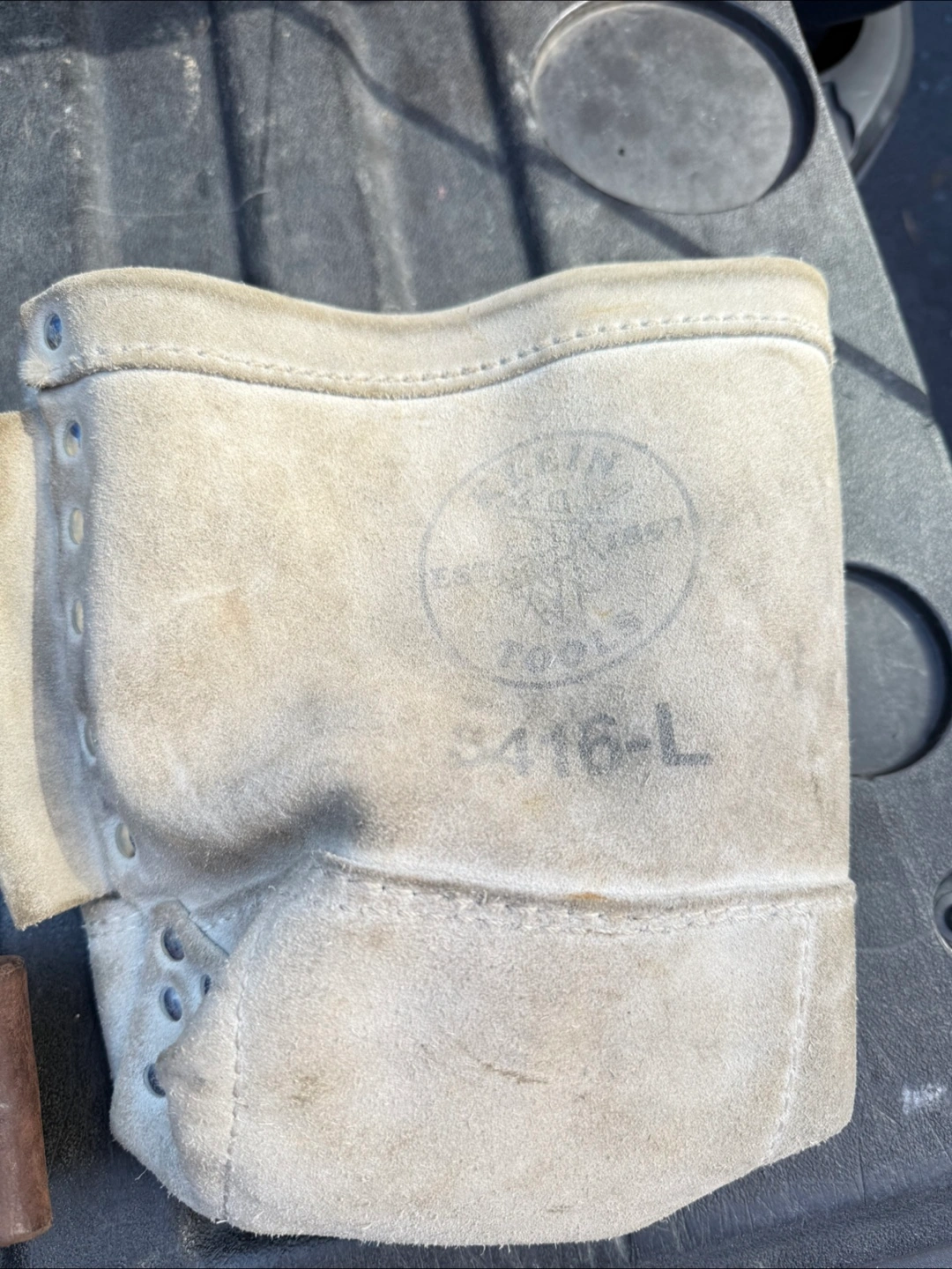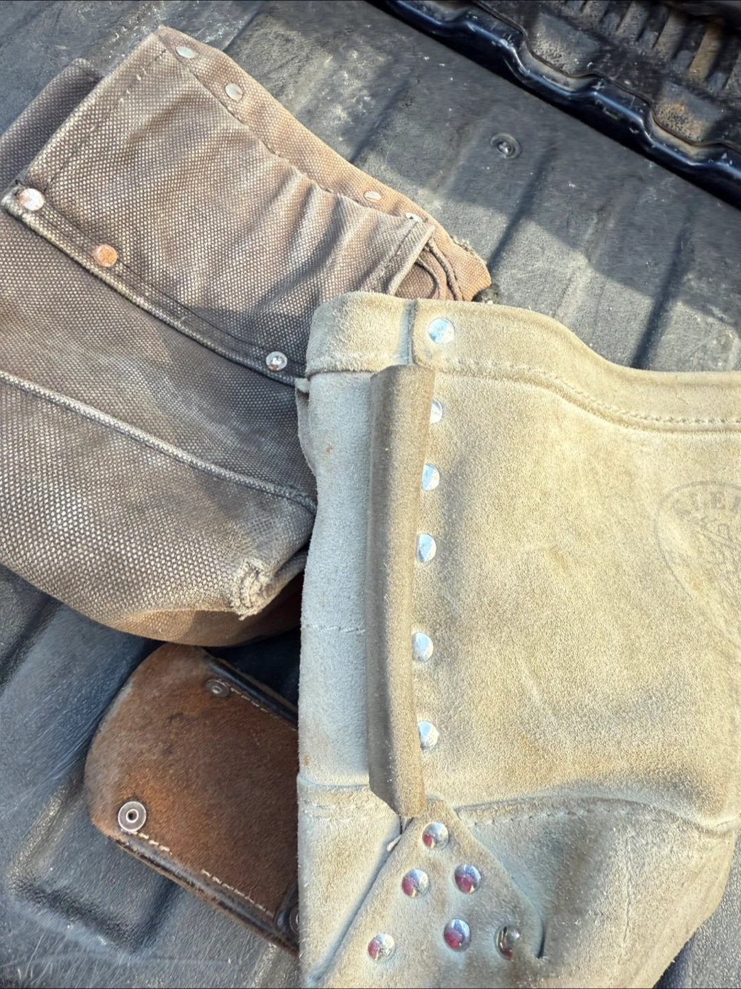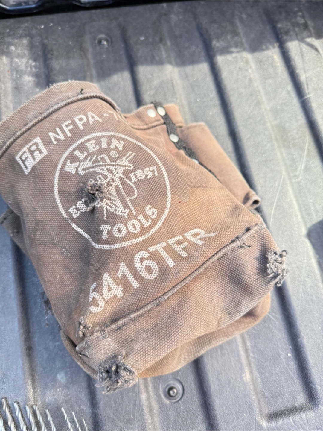 Selling a Klein Tools tool pouch. It appears to be the 5416TFR model, and it's FR NFPA rated. It shows signs of wear, but is still functional.