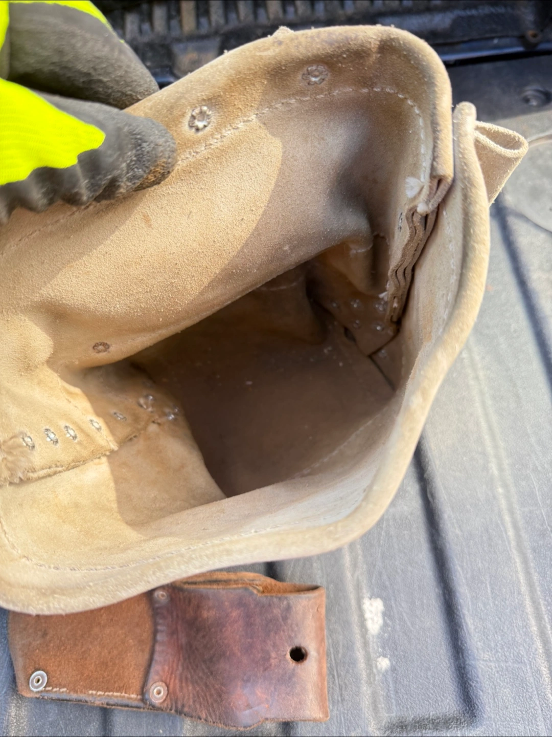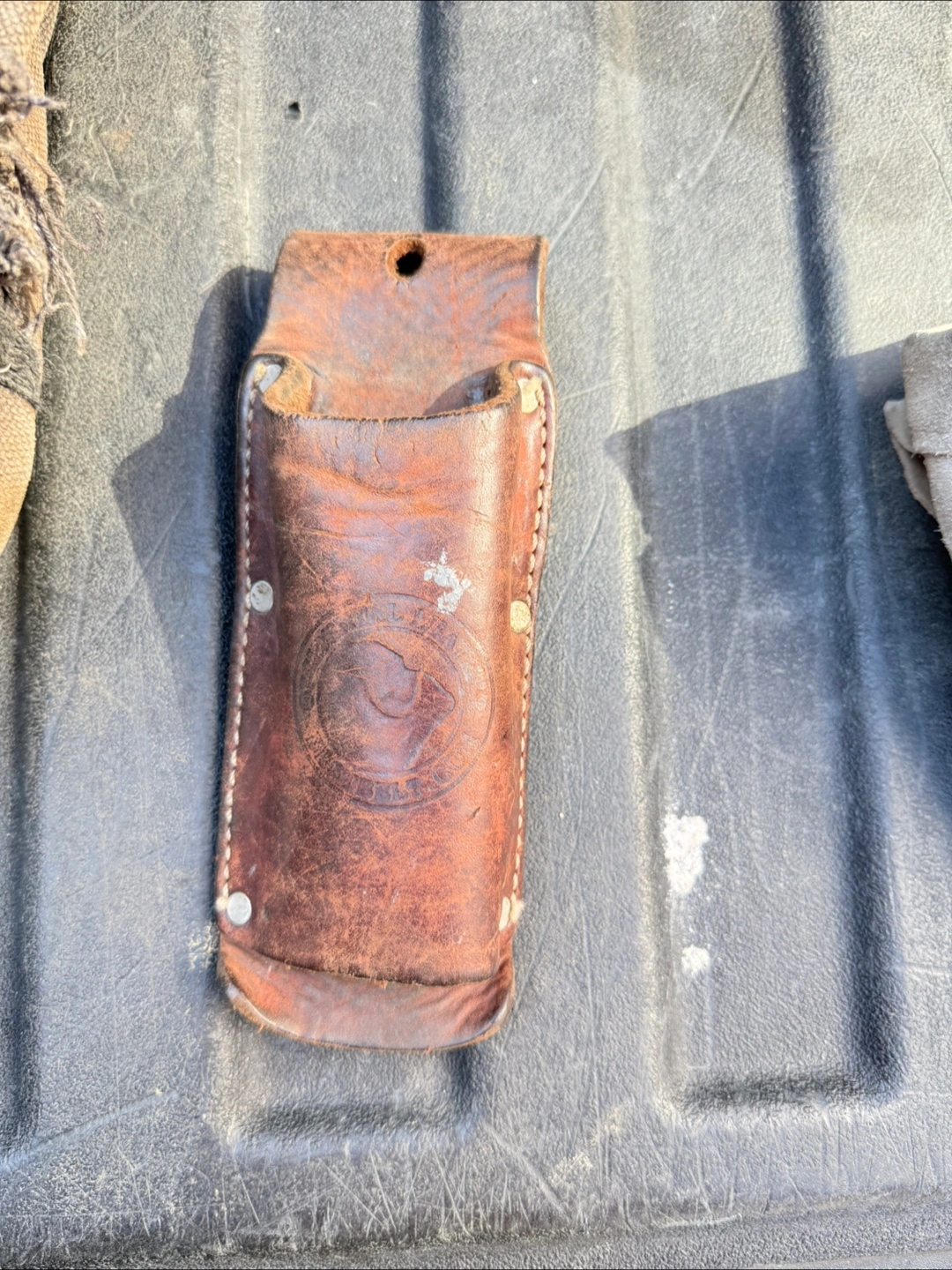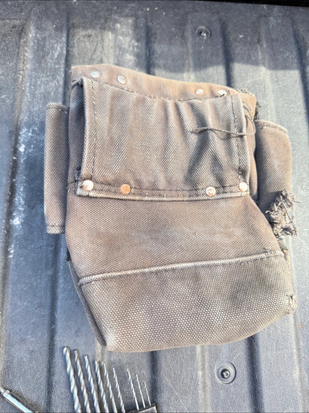 Selling a Klein Tools tool pouch. It appears to be the 5416TFR model, and it's FR NFPA rated. It shows signs of wear, but is still functional.