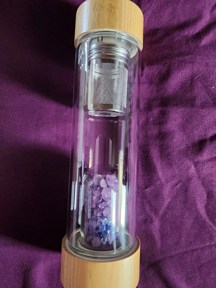 Selling a brand new Hodezaki crystal infuser bottle! This crystal infuser bottle is perfect for enjoying your water everywhere. It has a bamboo lid and comes with a black sleeve. Send me your offer.