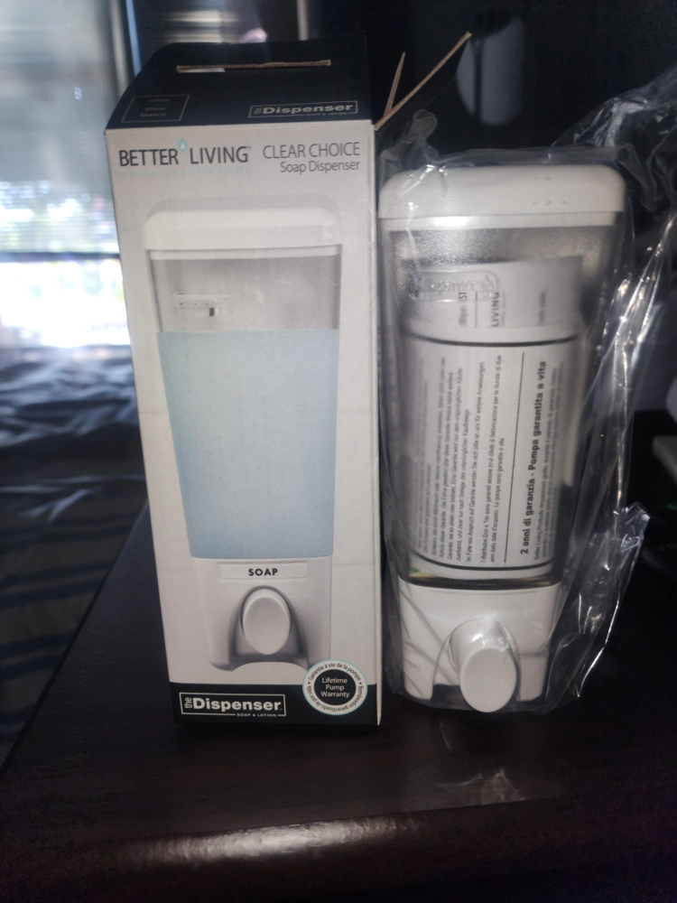Selling a brand new BETTER LIVING CLEAR CHOICE soap dispenser! It's still in its original packaging. This dispenser is designed for both soap and lotion, making it a versatile addition to your bathroom or kitchen. It also comes with a lifetime pump warranty, so you can be sure it will last!