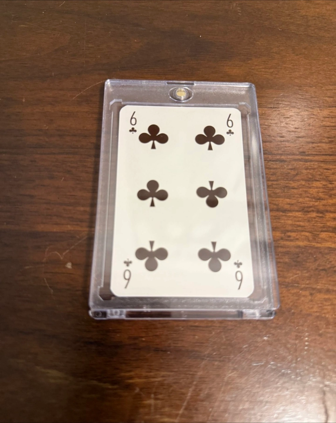 94Selling a Louis Vuitton playing card in a protective case. It features the classic LV logo on one side and the six of clubs on the other. Great for collectors!