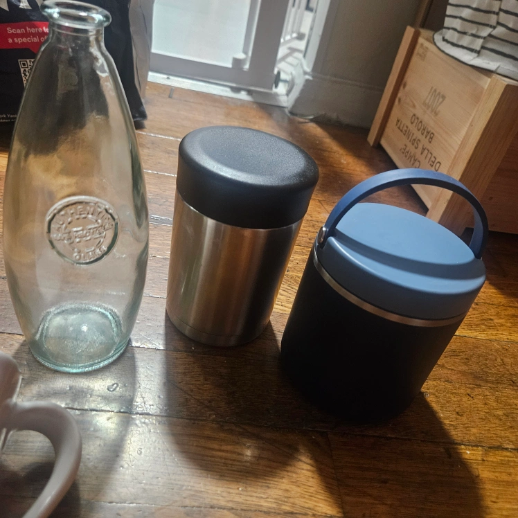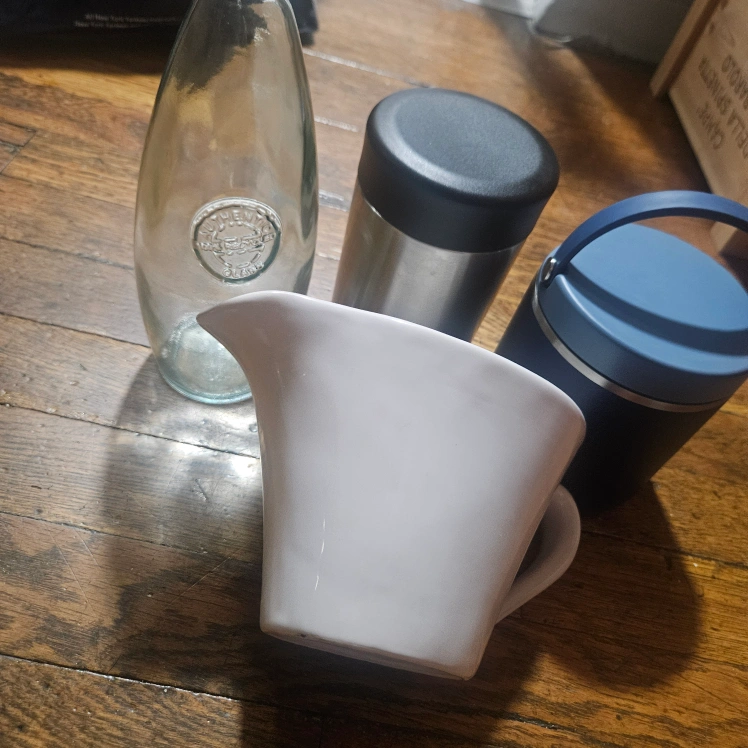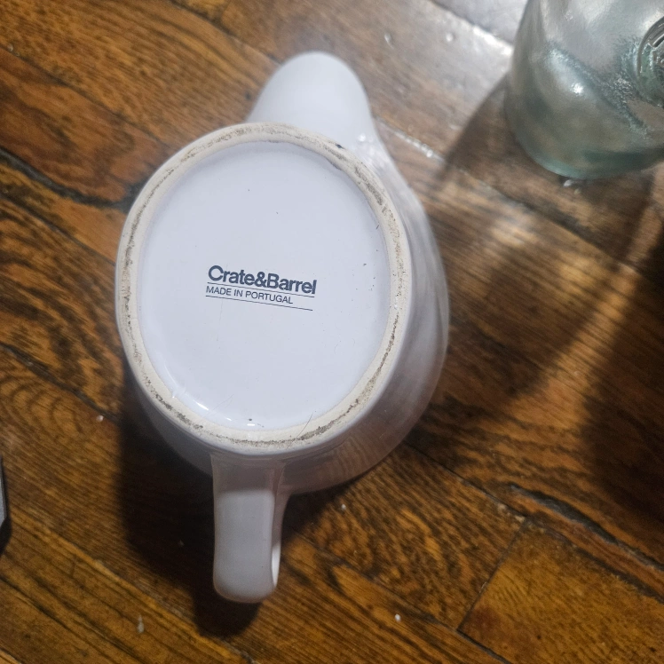 I'm selling a Crate & Barrel creamer, perfect for serving milk or cream with coffee or tea! It's in great condition and ready for a new home. Also included is a glass bottle. They would make a great addition to your kitchen or dining collection!