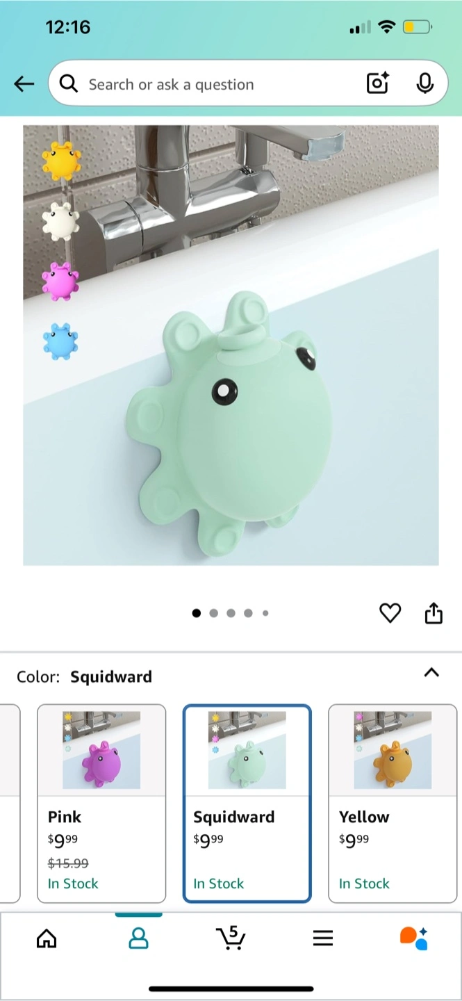 I'm selling a cute faucet extender in the shape of Squidward! It's green. It was originally listed for $9.99.